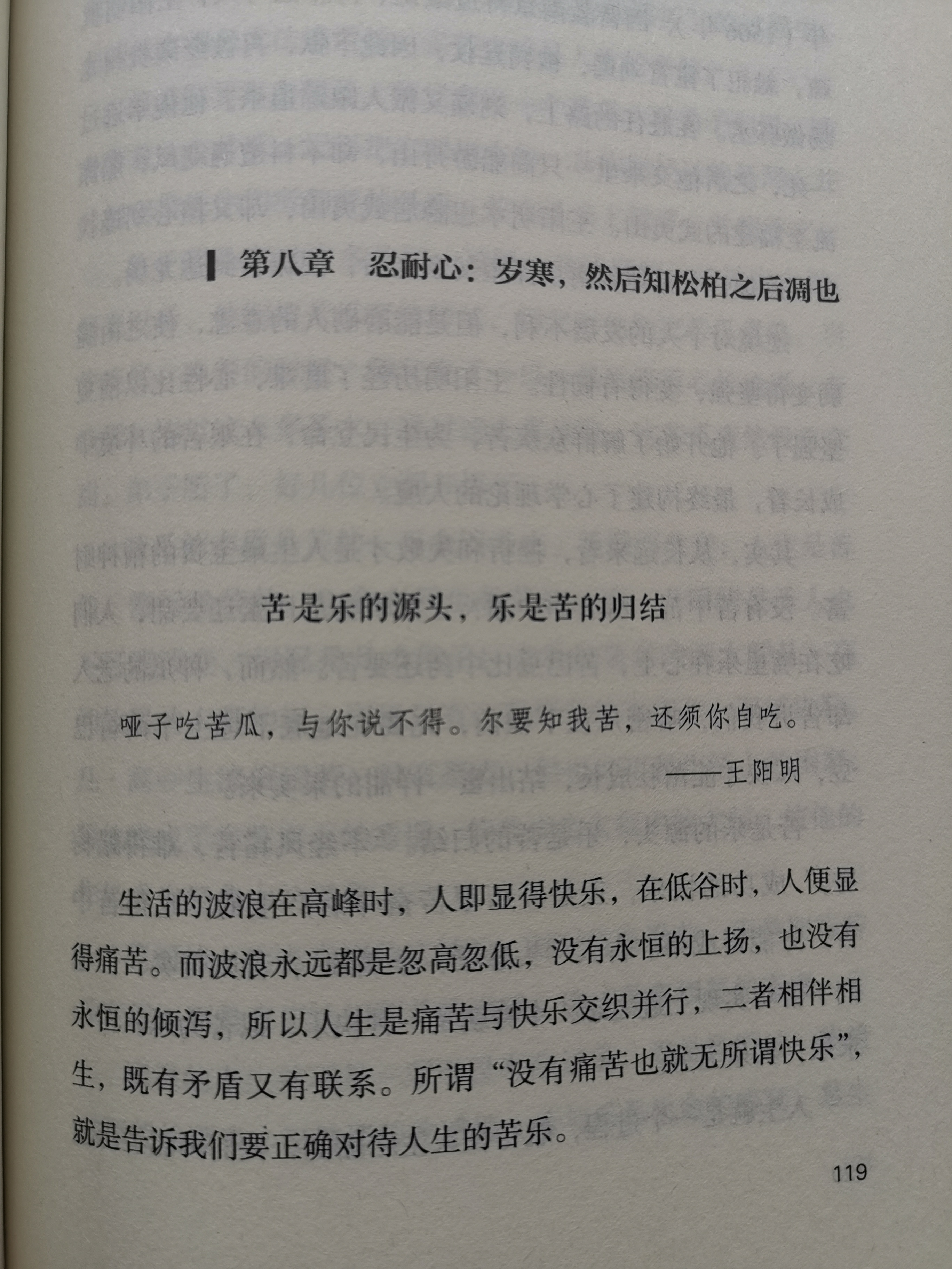 🇨🇳王阳明心学的智慧:哑子吃苦瓜,与你说不得。尔要知我苦,还须你自吃。个人感悟心得:苦是人生原味,酸甜苦辣咸都得尝一尝,要知道没有苦哪有甜,没有付出哪有收获,没有痛苦哪有幸福!苦是乐的源头,乐是苦的归结。苦过累过,才更懂得珍惜,苦尽甘来的幸福,才会更持久。吃苦也好,吃亏也罢,都是人生的一笔宝贵财富,没有人随随便便可以成功,幸福不会从天降,不下苦功等不来!吃亏是福,吃苦未必就是一件坏事。那些伟大人物和行业翘楚,哪一个不是苦出来、干出来、拼出来的。
