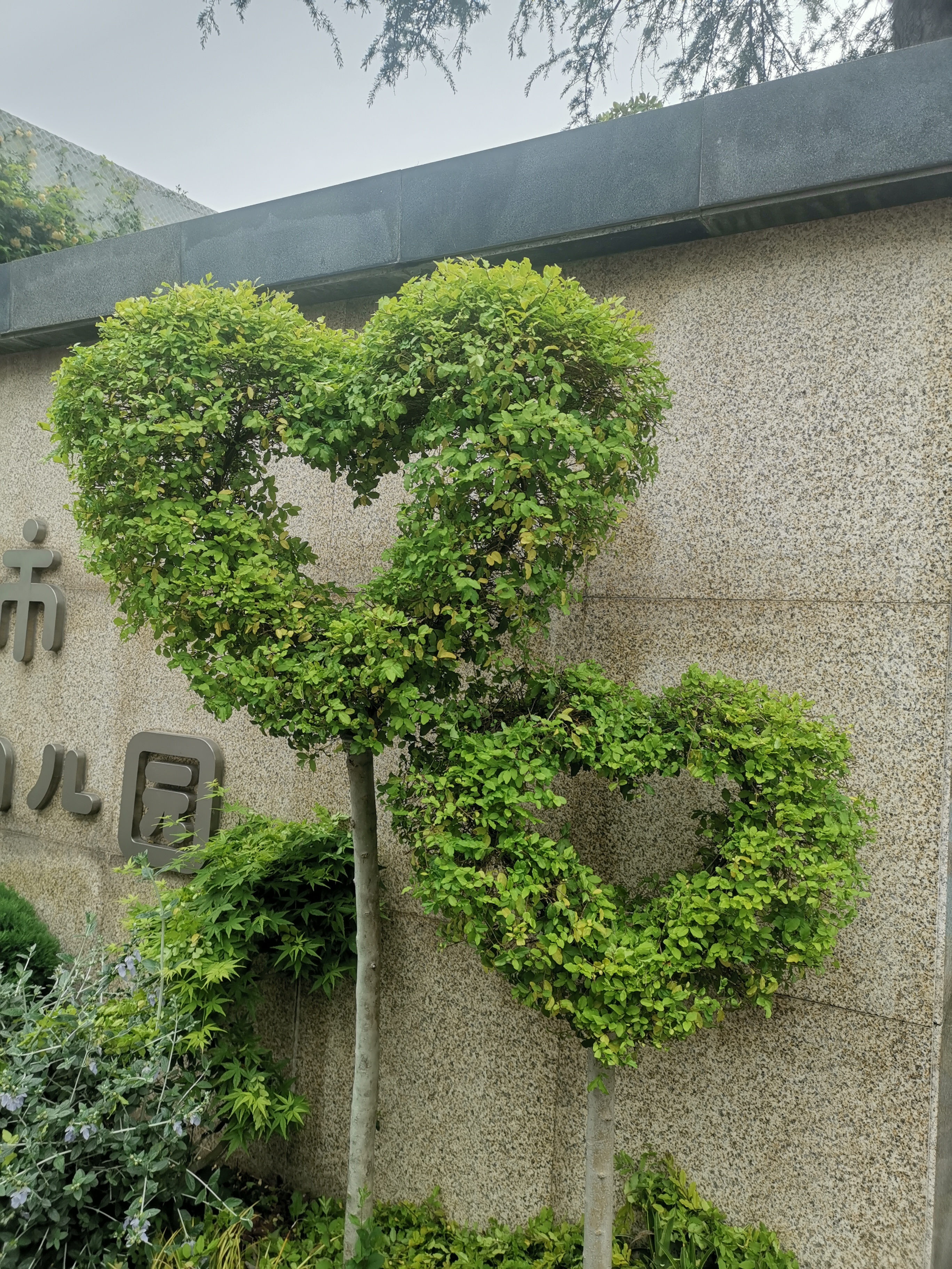 🇨🇳幼儿园门口的两株爱心绿植超有爱,好温暖!