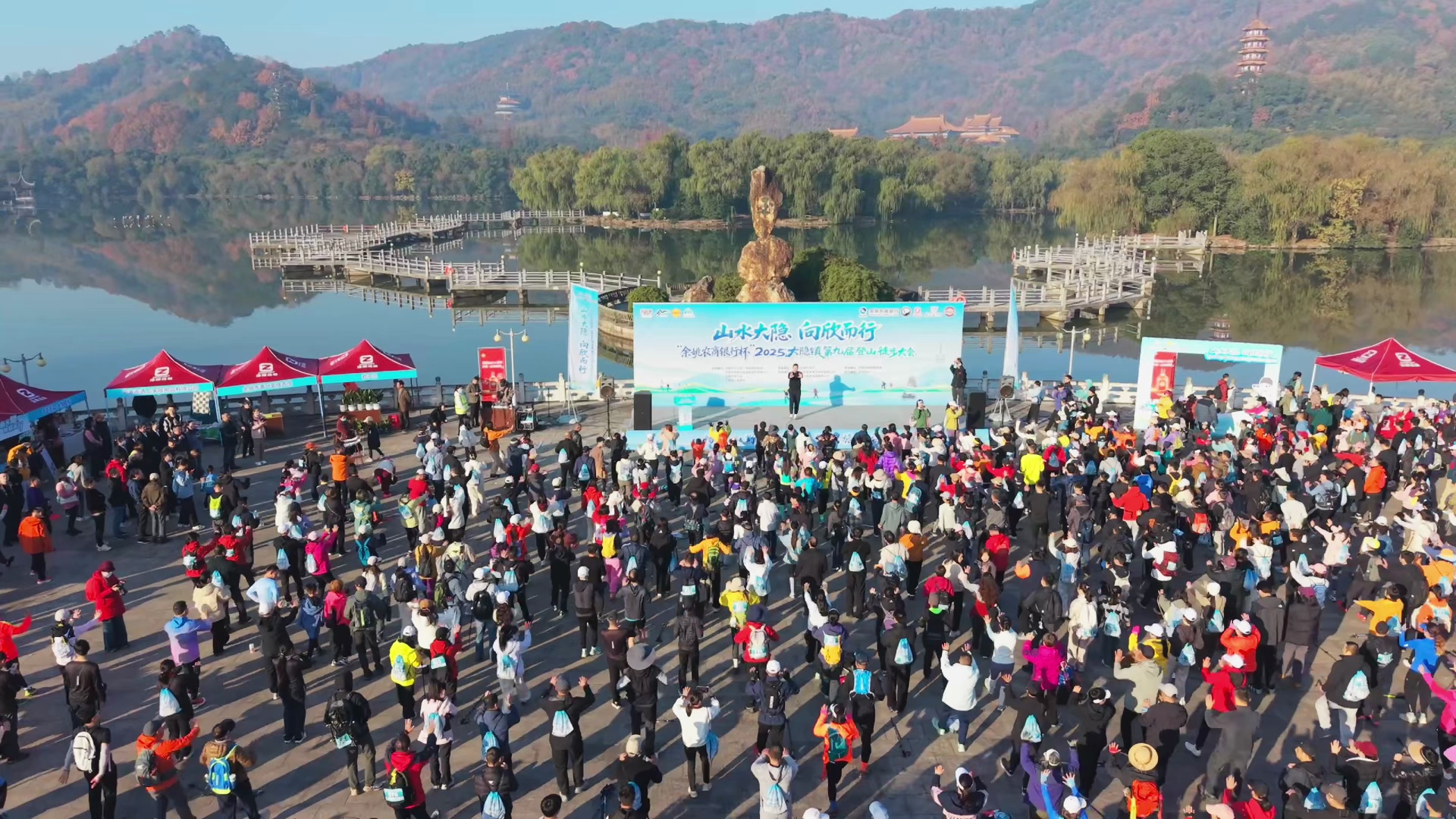 12月7日,“余姚农商银行杯”大隐镇第九届登山徒步大会在余姚市大隐镇的天下玉苑景区成功举办。本次活动吸引了来自全国各地的500余名徒步健身爱好者参与,共同开启了一场在山水间的徒步之旅。 本届大会以“山水大隐 向欣而行”为主题,设置了一条约10公里的健步环形路线。参与者从天下玉苑出发,沿途经过隐溪河畔,漫步在千年古道的青石板上,享受自然风光。