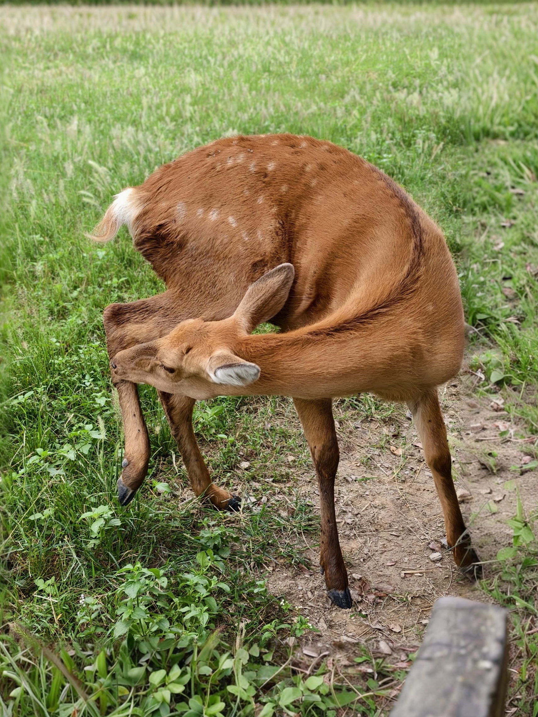 阴天溜达公园,偶遇小鹿斑比,它说这花归它管~ 🌼🦌