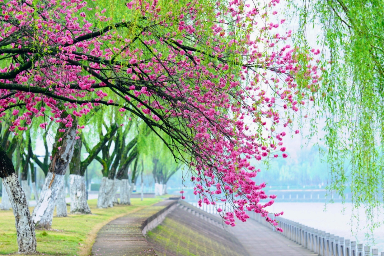 碧桃花 | 江滨的桃红柳绿