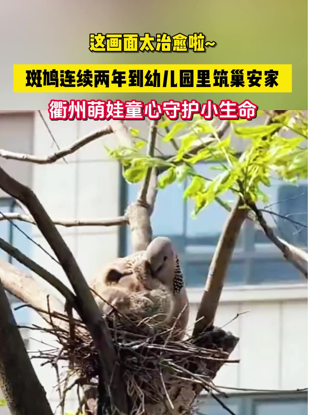 这画面太治愈啦~斑鸠连续两年到幼儿园里筑巢安家。衢州萌娃童心守护生命!