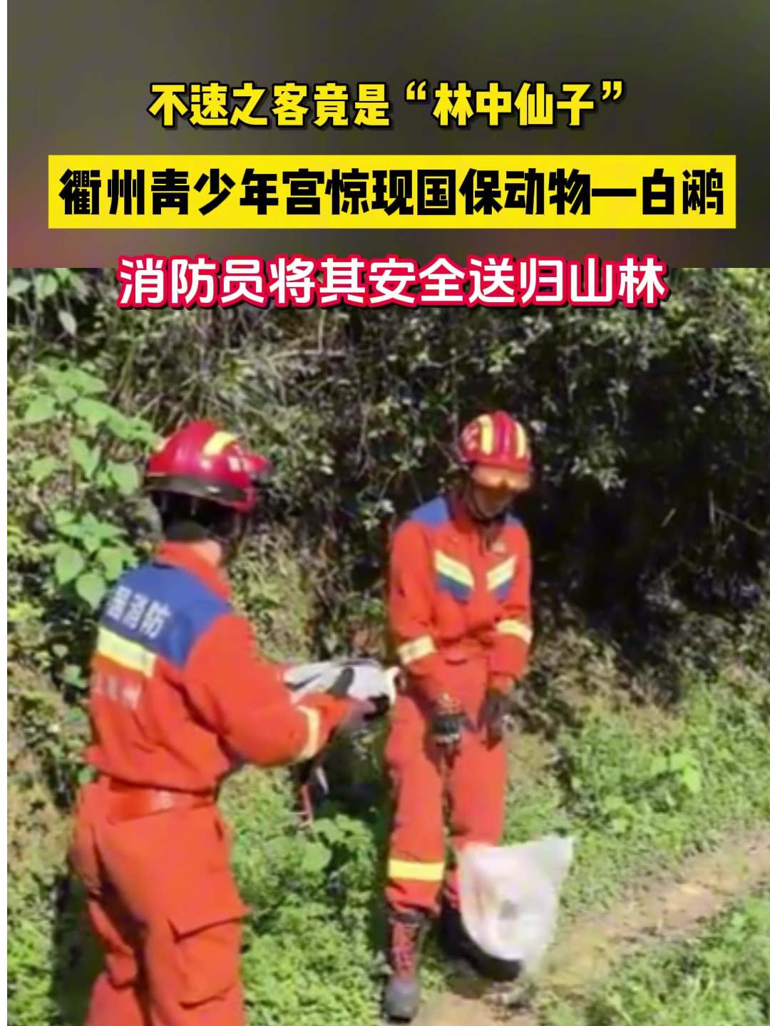衢州青少年宫惊现国保动物 —— 白鹇!消防员将其安全送归山林。