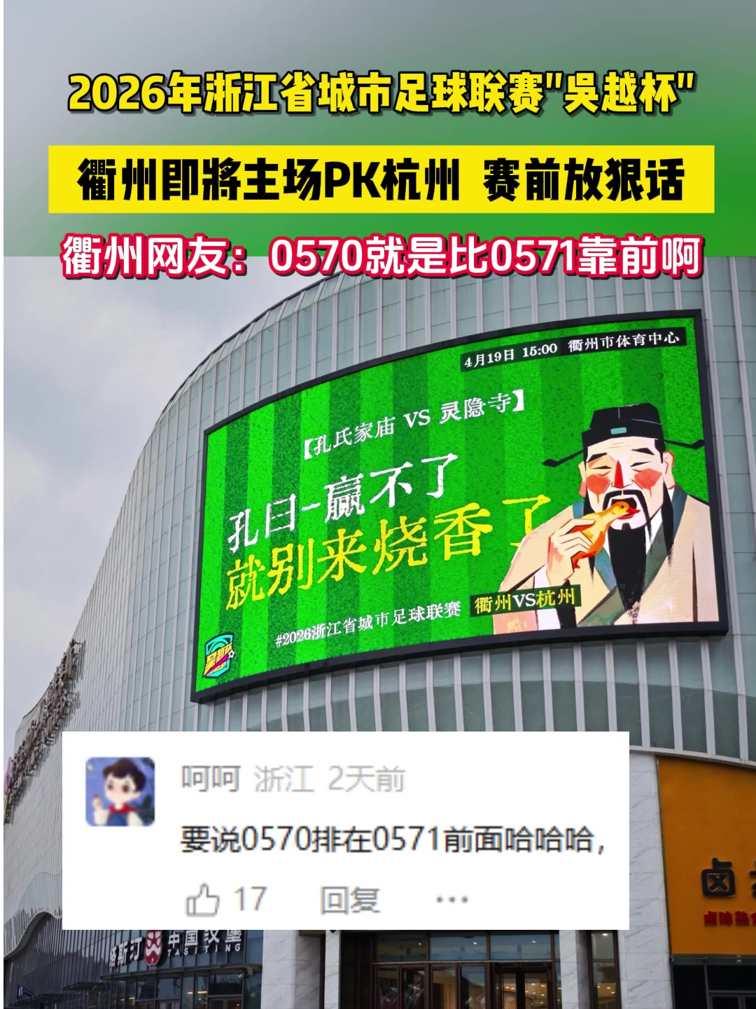 2026 年浙江省城市足球联赛 “吴越杯”,衢州即将主场 PK 杭州。