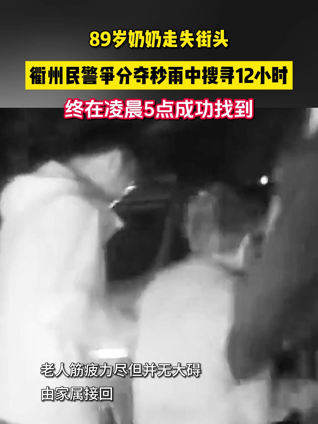 89岁奶奶走失街头,衢州民警争分夺秒、雨中搜寻12小时,终在凌晨5点成功找到。