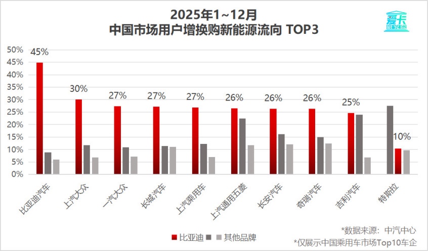 复购率印证品牌力!比亚迪30.55%复购率一骑绝尘 汽车行业素有“规模扩大必稀释忠诚度”的魔咒,但比亚迪用实绩将其打破。爱卡研究院最新发布的《2025年车企复购率榜单》显示,比亚迪老车主复购率高达30.55%,位居行业第一。 这一数据的背后,是比亚迪在新能源增换购市场形成的强大“虹吸效应”。无论是自身车主,还是来自主流合资与自主品牌的用户,在置换新能源车时,都将比亚迪作为首选。据统计,TOP 10车企用户中,平均每4个增换购新能源的用户,就有1个选择了比亚迪。这标志着比亚迪已从单一销量领先,迈入以用户忠诚和品牌引力驱动可持续增长的新阶段。 高复购率源自两大核心支柱的坚实支撑: 一、对研发的极致重视与长期坚守,是比亚迪维持高复购率的核心原因之一。 研发投入是比亚迪刻在基因里的坚守。2011至2024年的14年间,有13年研发支出超过净利润。2025年前三季度,研发投入高达437.5亿元,累计超2200亿元,天神之眼、兆瓦闪充等前沿技术持续落地,不断夯实产品体验与用户信任的基石。 二、多品牌矩阵及高端化布局成效显现,是比亚迪维持高复购率的核心原因之一。 王朝、海洋网络累计销量突破千万,构成稳固基盘。随着消费升级,用户决策从“价格敏感”转向“价值认同”。而仰望、腾势、方程豹三大高端品牌的成功,精准覆盖了从豪华到个性化的增换购需求。 千万体量下,超30%的复购率不仅是数字,更是比亚迪“技术、产品、品牌、服务”综合价值的集中体现。复购率印证品牌力!凭借高复购率这一内生增长引擎,比亚迪的未来更具想象空间。