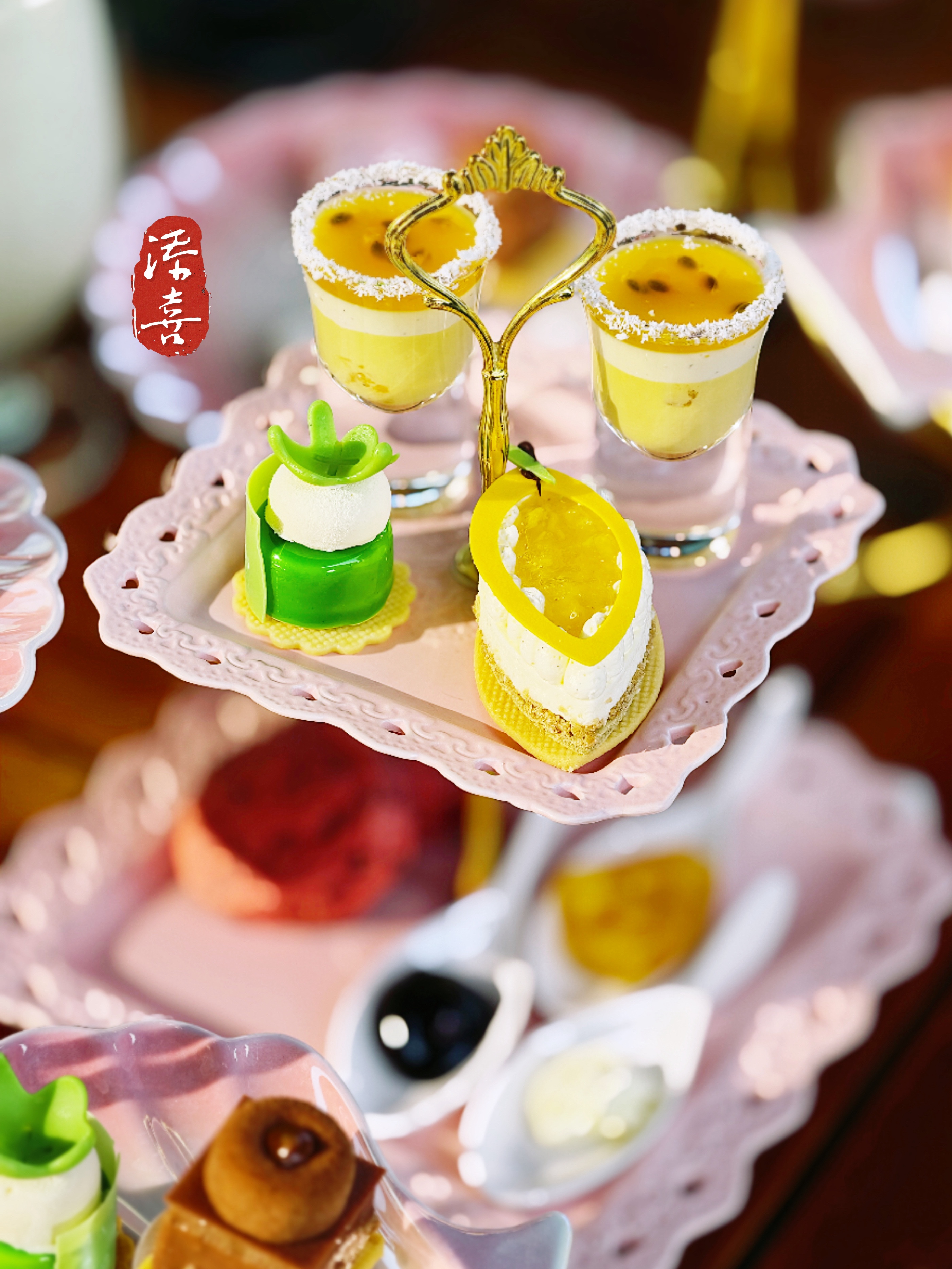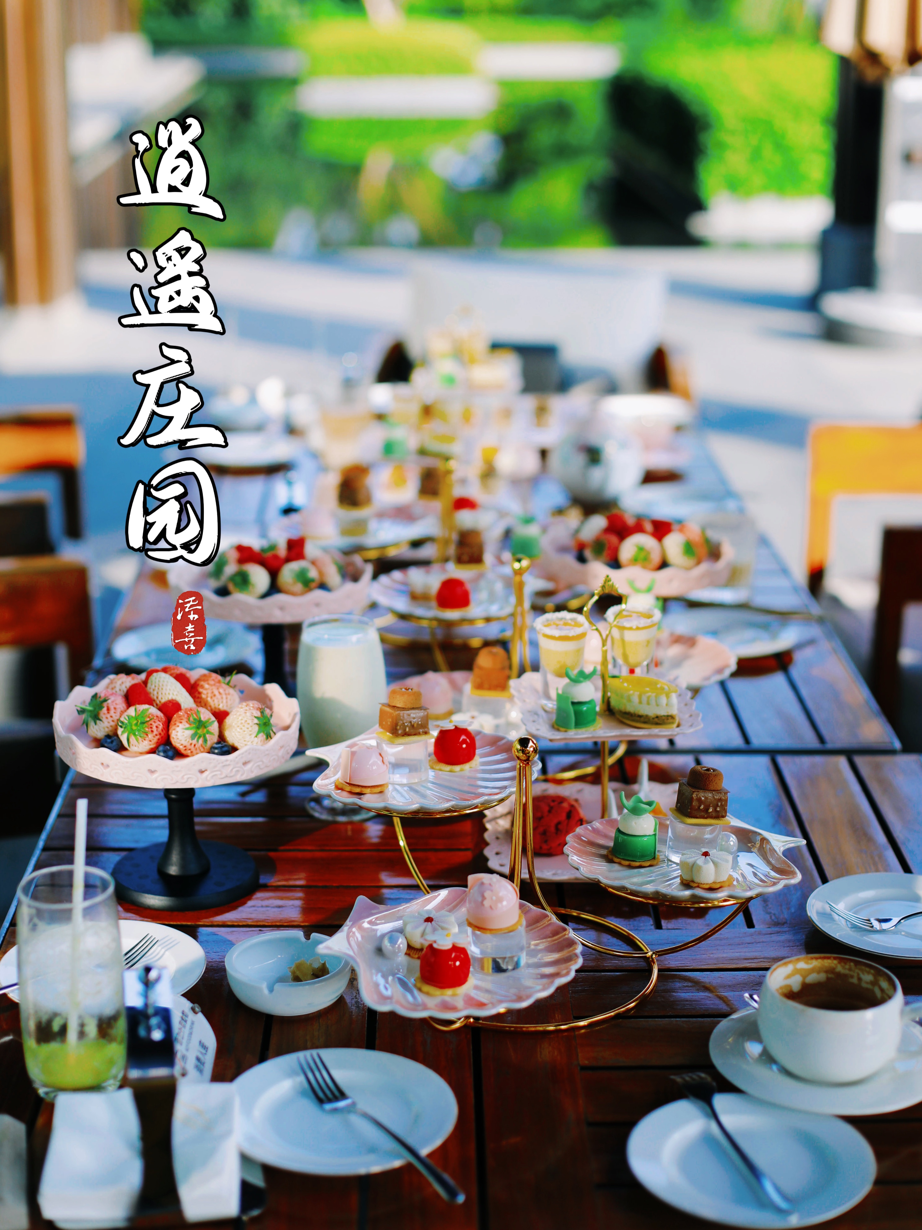 春樱为信,爱你如初🌸杭州湘湖边の张凌赫《爱你》一周年下午茶💗 追剧的时候就在想,要是能把剧里的心动吃进肚子里就好了🍰 没想到,湘湖逍遥庄园真的和爱奇艺联名了这席《爱你》樱花下午茶,正好赶上一周年,像是春天替我们记住的一场约定✨ 📍杭州湘湖逍遥庄园·逸吧(L层) 🕒13:30-17:00 特意选了户外的位置,把自己安顿在这片山水村落式的园林里🌿庄园由GOA大象设计操刀,依托彼岸大山、蜿蜒溪流,庭院深深,移步异景。坐在檐下,眼前是小桥流水与层层绿植,原木与自然相映,中式古典的静谧感扑面而来——连落客区的庑殿顶都透着宫殿式的庄重,而天井里又藏着徽派“有堂皆井”的巧思🏯 整套下午茶从咸点到甜品,都透着江南春日的细腻🌸 咸点里鹅肝夹心鳗鱼慕斯温润绵密,樱花牛肉塔带着淡淡的烟熏香气,番茄冷汤桂花啫喱芝士卷入口清冽,是很有巧思的开场✨ 甜品更是写满了春天的名字—— 樱花雪乳轻盈得像一朵云☁️樱花蔓越莓司康松软温热,黑森林松露浓郁不腻,芒果香草奶冻滑进嘴里就是温柔本身🍮燕窝水果捞收尾,时令果盘里还藏着白草莓、蓝莓和树莓,是春日限定的甜🍓 饮品有咖啡☕茶🍵起泡酒🥂也可以选《爱你》同款奶茶🥤要一杯《爱你》同款奶茶,捧着它的时候,好像又回到了追剧时心动的那个下午🍃 春樱作宴,爱你如初💕 在山水庭院里,把剧里的浪漫,过成生活里的一下午🌙