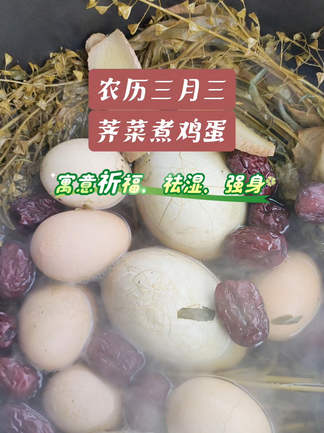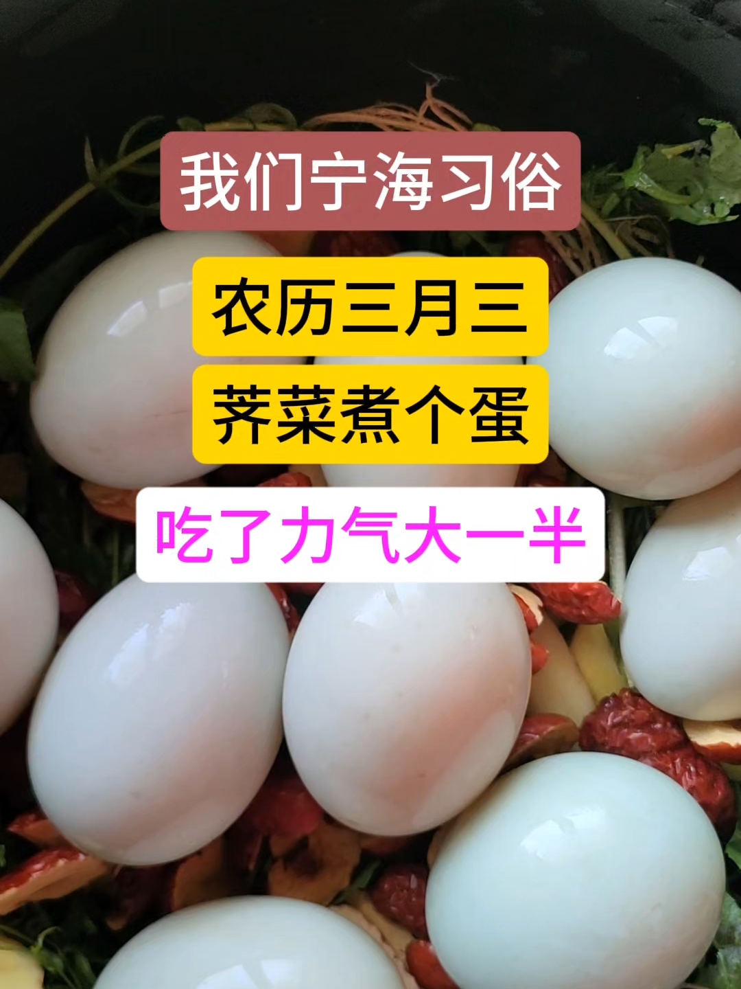三月三荠菜煮鸡蛋 宁海民俗迎春日 农历三月初三,宁海家家户户煮起荠菜鸡蛋,民间素有“吃了力气大一半”的说法。 村民采来新鲜荠菜,搭配生姜、红枣与鸡蛋同煮,暖身驱寒,清香入味。这道时令小吃寓意驱春困、强身体,寄托着平安健康的美好祝愿。 简单的家常美味,承载着“荠菜赛灵丹”的古老习俗,在烟火气中传承着宁海人的生活智慧与春日期盼。