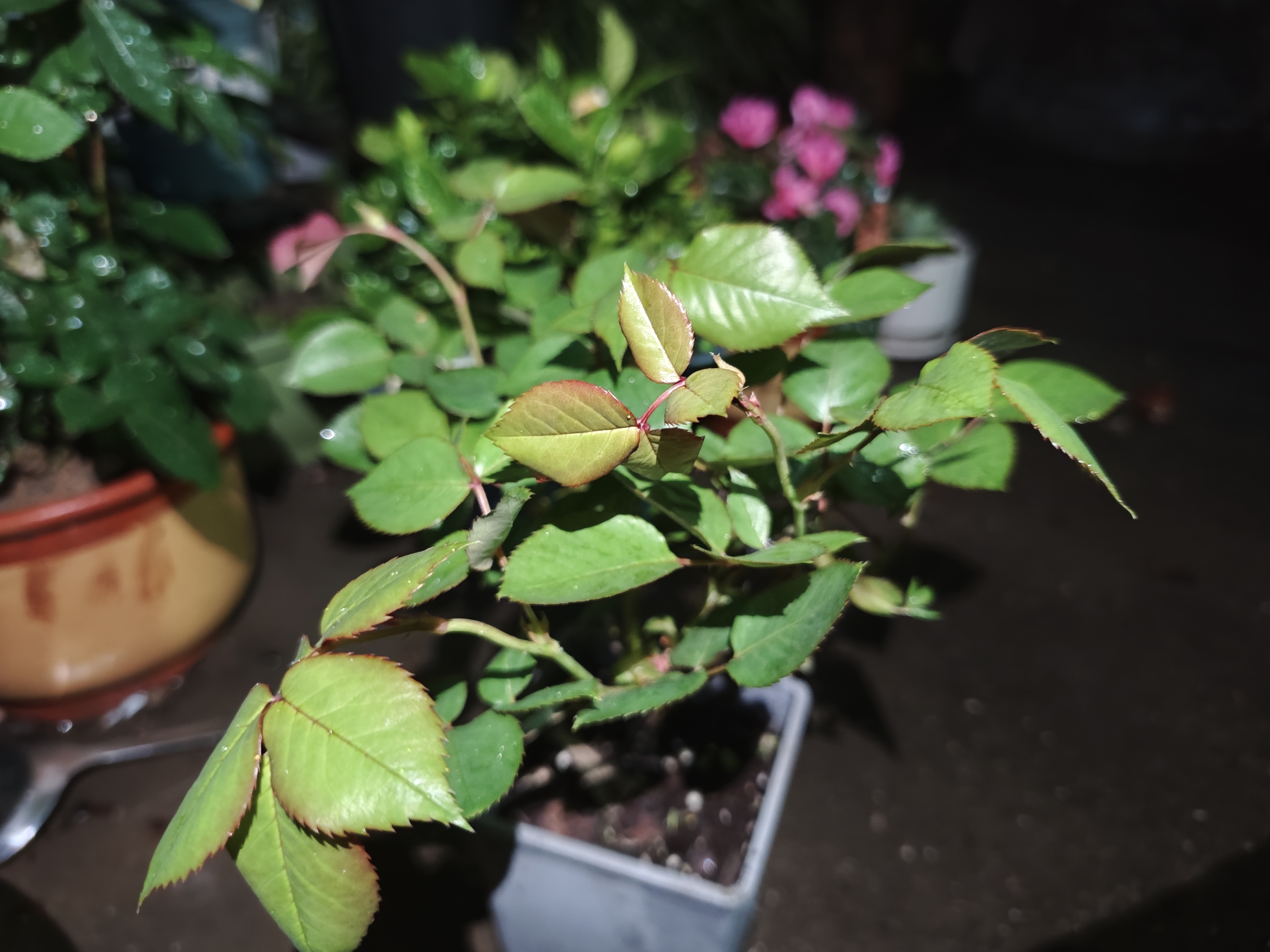 钱报朋友圈的礼物——月季 这盆月季,原在农艺师匠心照料下生长。如今却因一段美好的契约,飞越山海,来到浙东慈孝故里——慈溪,庭院的夜色如墨,却掩不住这盆月季的鲜活。 新叶怯生生地探出头,边缘晕着浅红的梦,像稚童攥着糖纸的指尖,在绿的掌心里,洇开一点羞怯的暖。叶片上的水珠是夜的泪吗?不,是月光吻过的碎银,滚落在脉络间,映出叶脉里奔涌的春。 那枚花苞,裹在嫩黄的襁褓里,茎秆挺着细瘦的腰,要往黑暗里讨一束光。旁边的叶儿,有的泛着紫褐的旧梦,有的亮着新绿的希望,它们依偎着,在风里低语——关于破土的疼,关于展瓣的甜。 背景里,模糊的粉花是旧时光的余温,而眼前的绿,是此刻倔强的生长。陶盆的黄,瓷盆的白,都成了它的舞台,在夜的幕布下,演一场关于生命的独舞。 每一片叶的颤动,都是对黎明的叩问;每一滴露的坠落,都是给大地的情书。这株月季,在暗里扎根,在光中抽芽,把夜的寂静,酿成向上的力量。 愿这盆月季如春天的使者,让读者与钱报朋友圈架起一道媒体互动好运连连的桥梁。