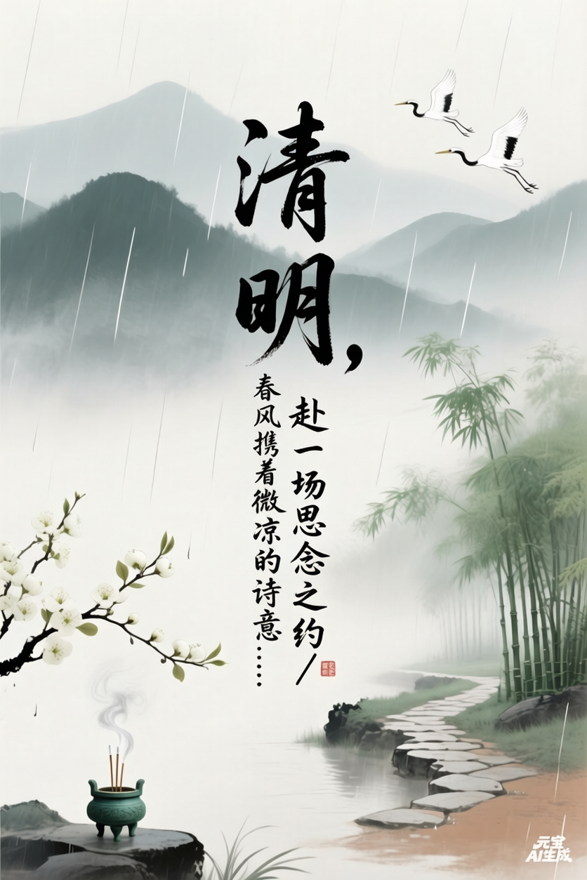 清明,赴一场思念之约 风,携着微凉的湿意,掠过枝头新绿。 清明,就这样悄然而至, 不是悲伤的终点,是一场,用爱奔赴的重逢。 路,伸向远方,伸向草木深深的地方。 每一步,都踩着时光的痕迹, 每一步,都向着记忆里温暖的身影靠近。 青烟袅袅,不是告别,是低语。 诉一句,我很好;念一声,很想您。 那些藏在岁月里的叮嘱,藏在烟火里的温柔, 从未被时光掩埋,在心底,静静生长。 雨落无声,润了青草,也润了眼眶。 原来死亡从不是分离, 遗忘才是。 只要思念还在,爱就不曾走远。 春风拂过,花开不语,叶落无声。 这一场奔赴,不问远近,不问朝夕。 只为告诉天堂的亲人: 岁月流转,爱意绵长, 您永远,住在我心上。