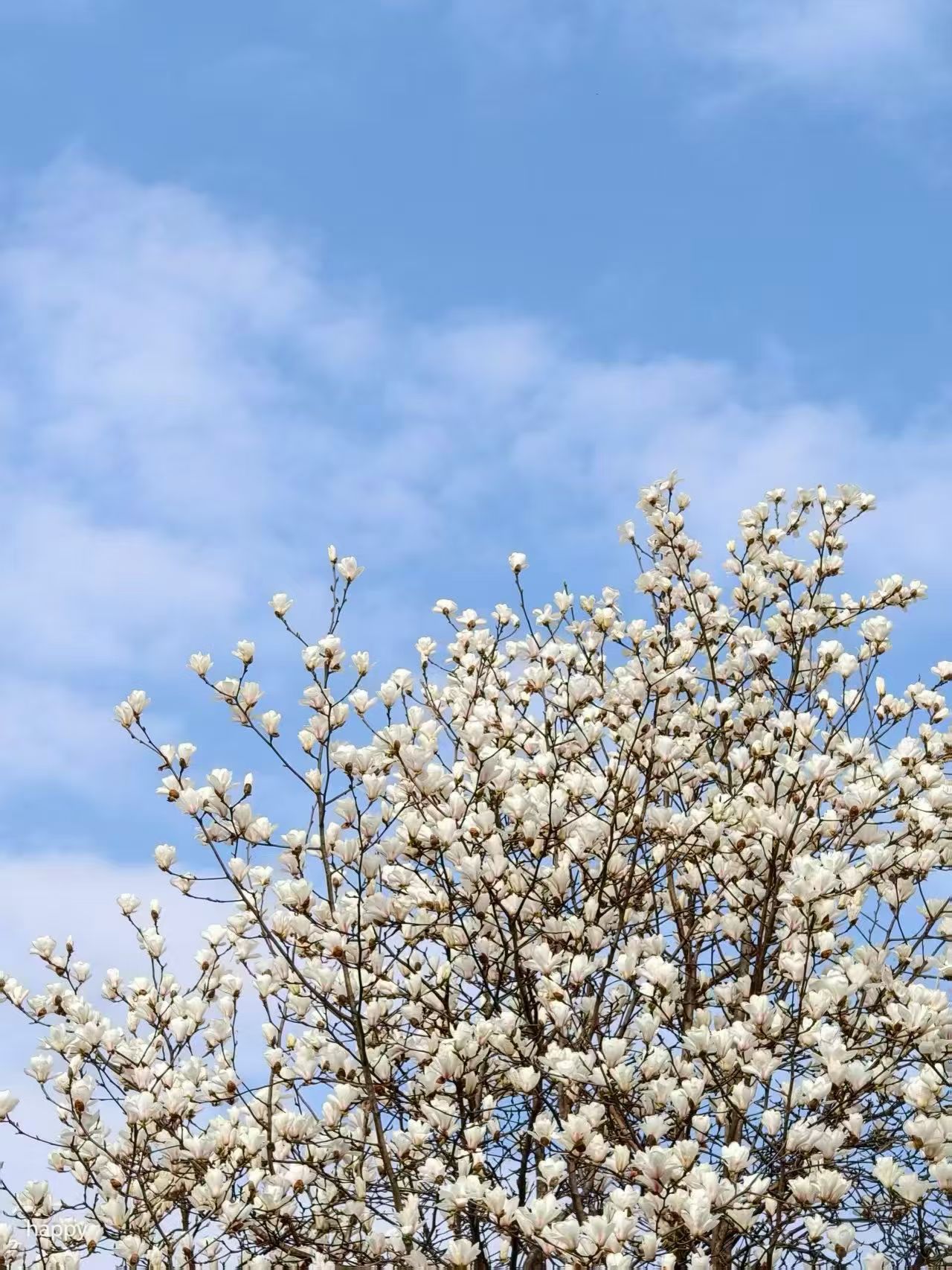 玉兰枝头雪,映着蓝天白云,春在无声处悄然绽放。