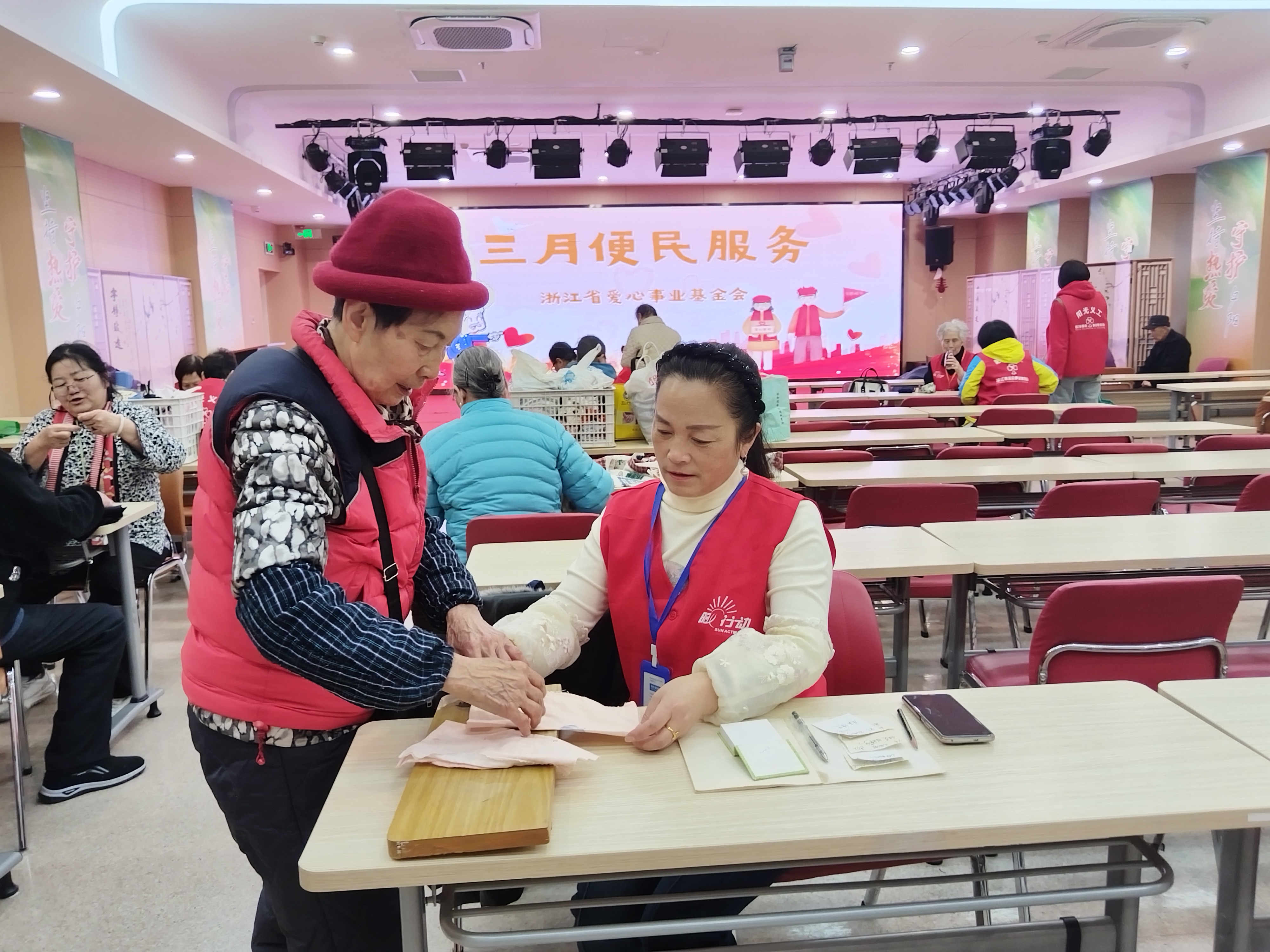 三月春光里,浙江省爱心事业基金会的阳光义工身着红马甲穿梭于针线与笑语间,缝纫机轻响,是时光温柔的节拍,敬老情在布料间静静流淌。