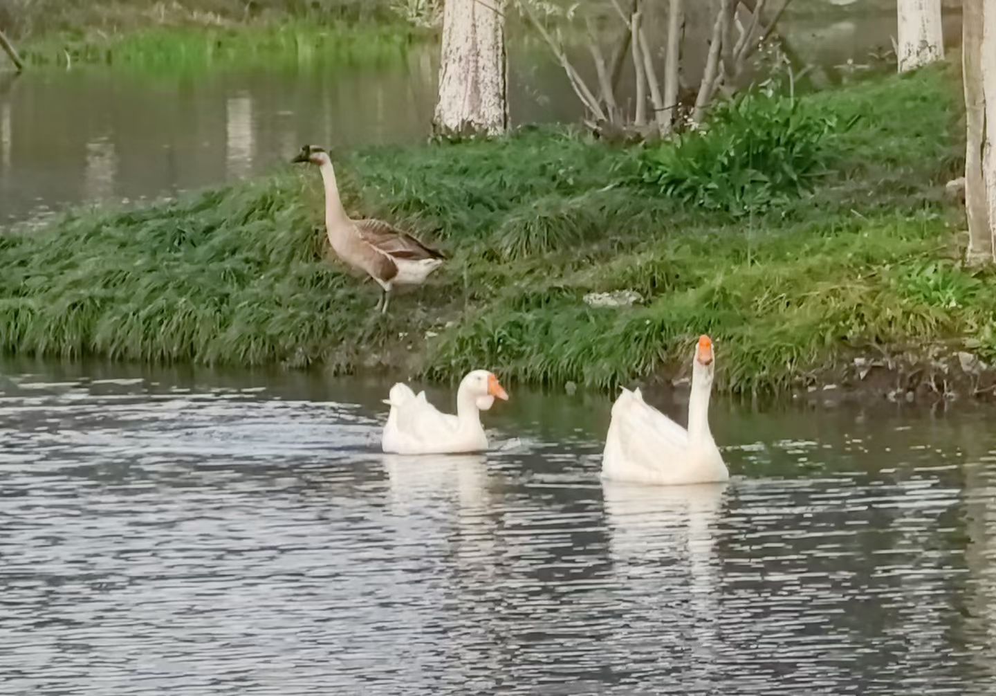 白鹅灰雁戏池塘,草木映水鸟悠然~随手一拍都是自然小确幸!