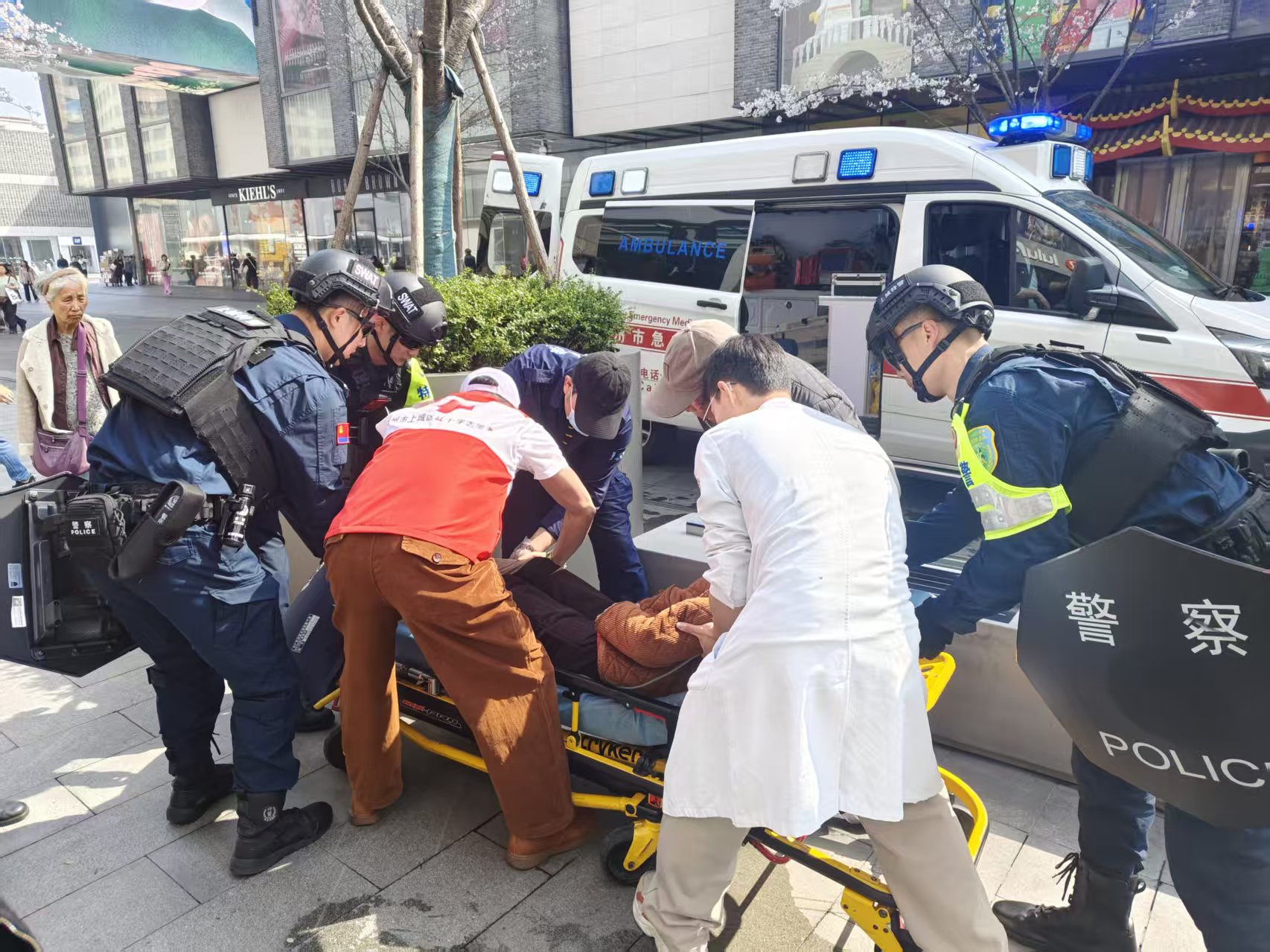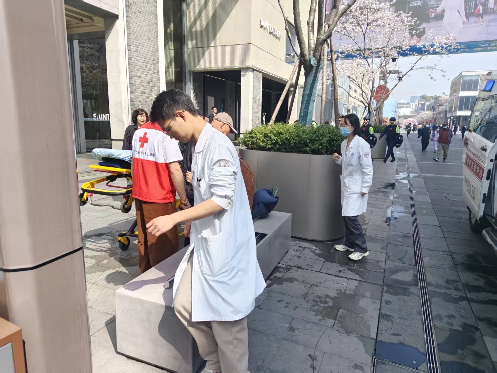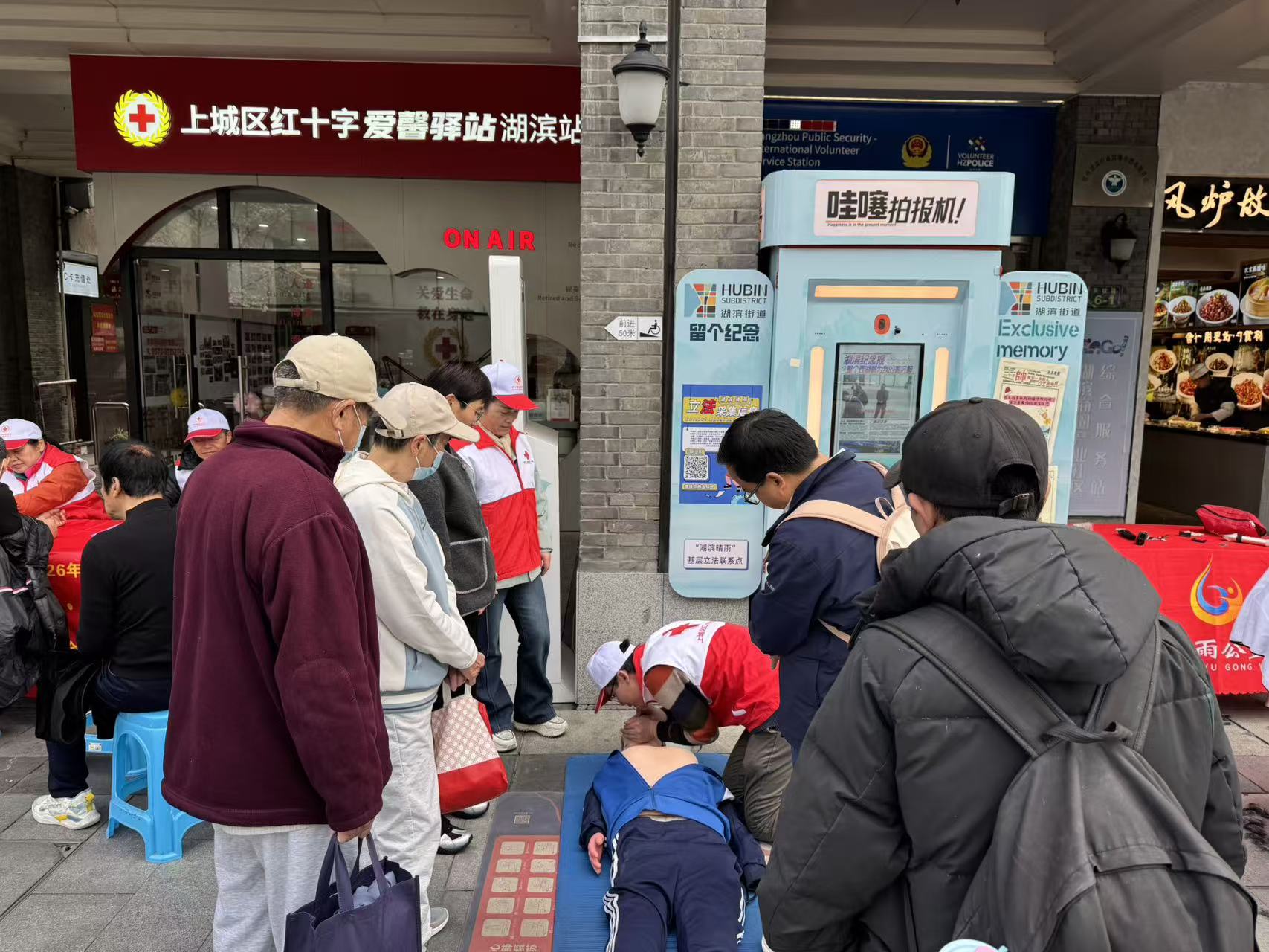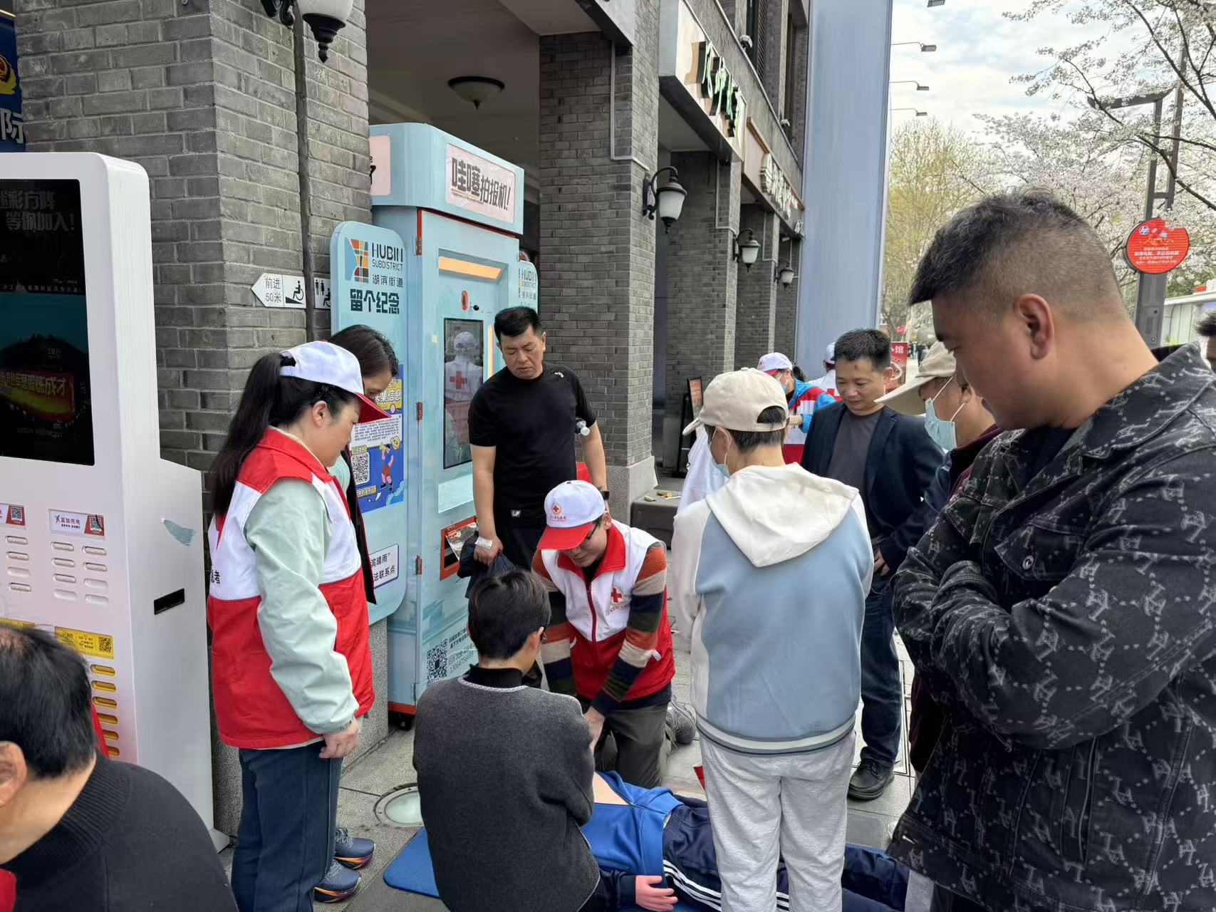 西湖边,樱花雨下,红十字志愿者们正为市民游客理发、普及急救实操,红十字“急救侠”周末在岗,守护湖滨,“救”在身边,平安同行。