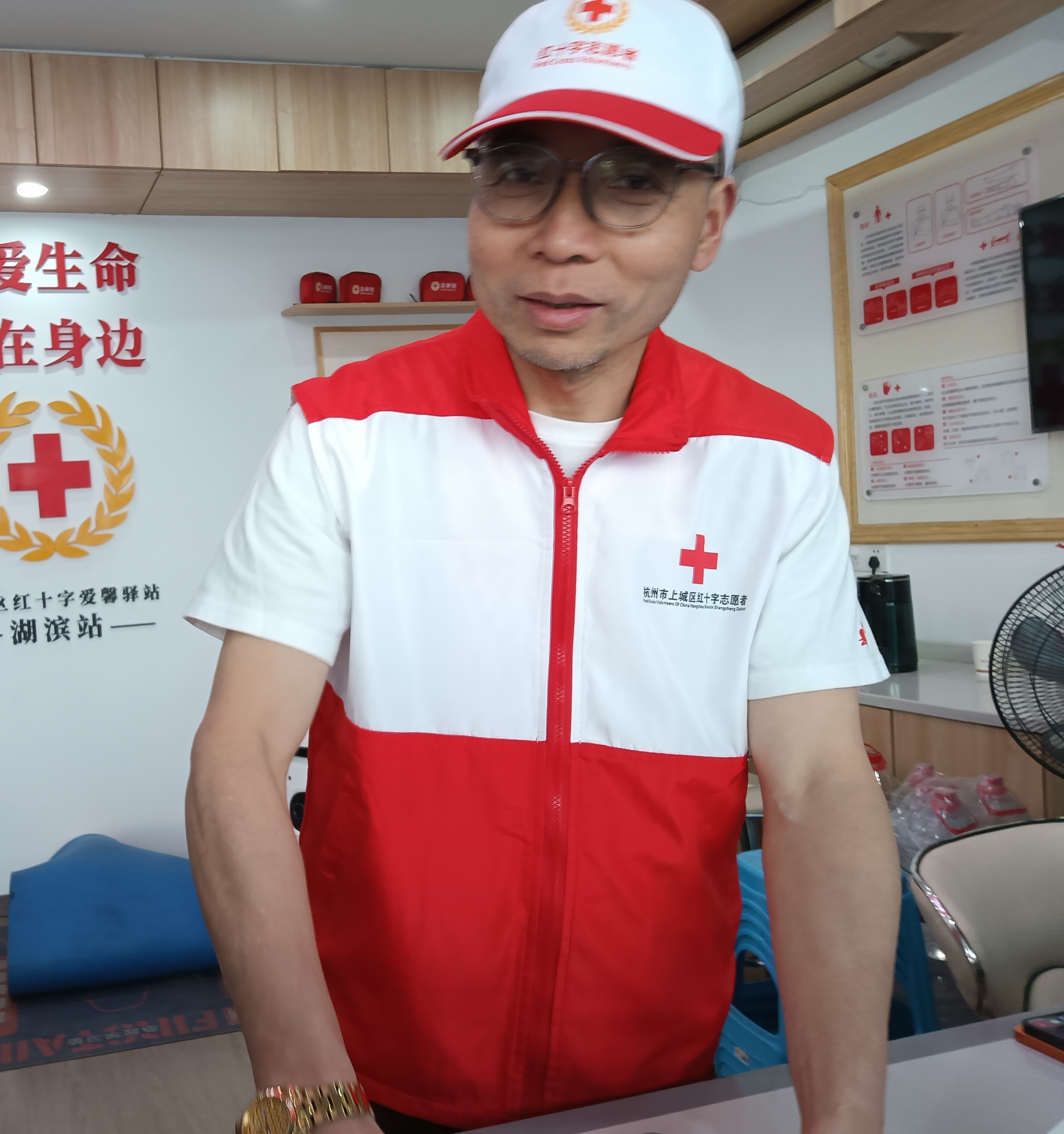 今天上午湖滨红十字爱馨驿站值班的晴雨公益服务中心的红十字志愿者曹建军,闻听湖滨步行街上有人晕倒 ,连忙赶过去帮忙救护,直到120救护车接走患者。“人人学急救,救在身边”的红十字志愿精神,在他身上体现的淋漓尽致。值得点赞。👍👍👍