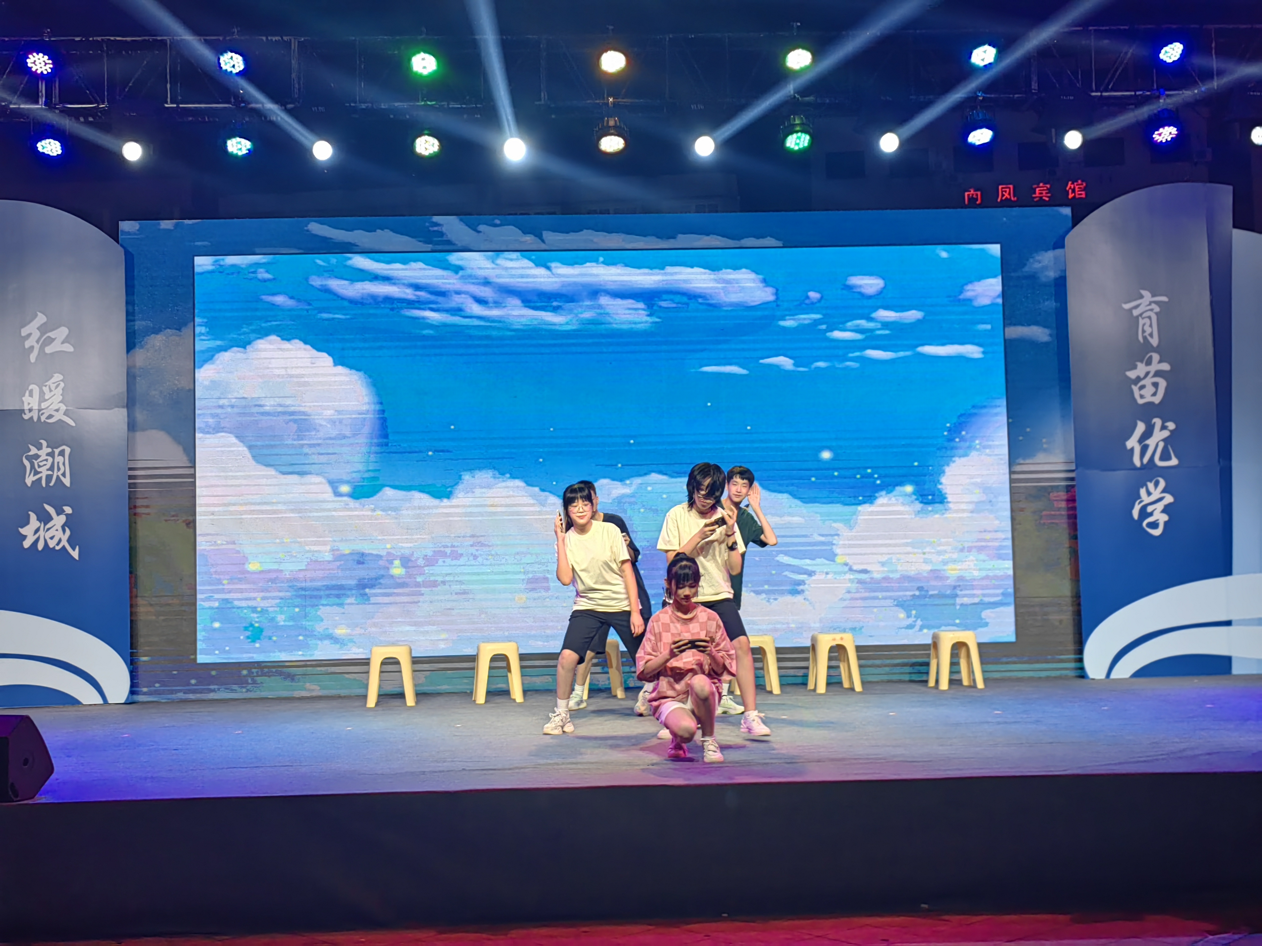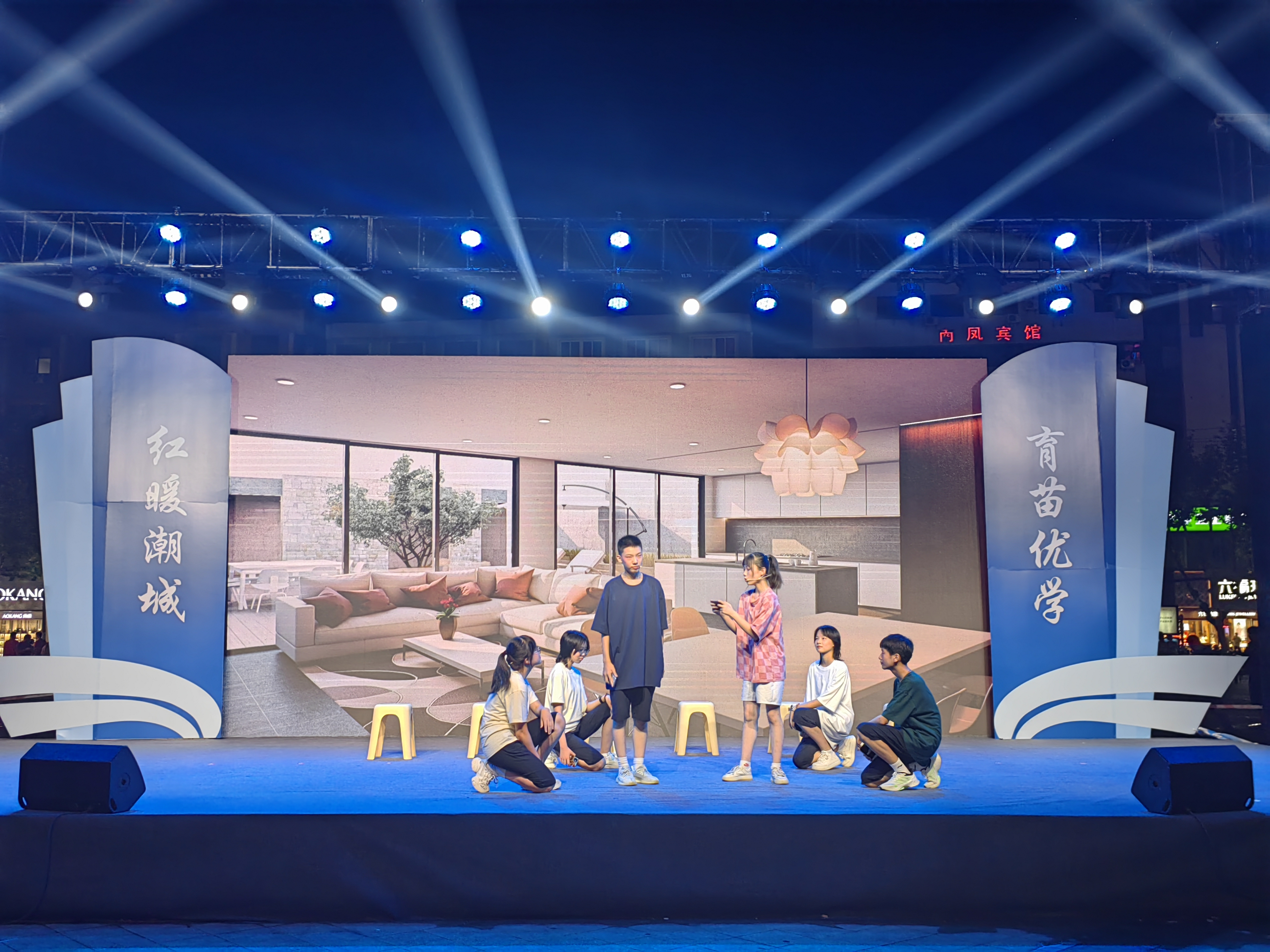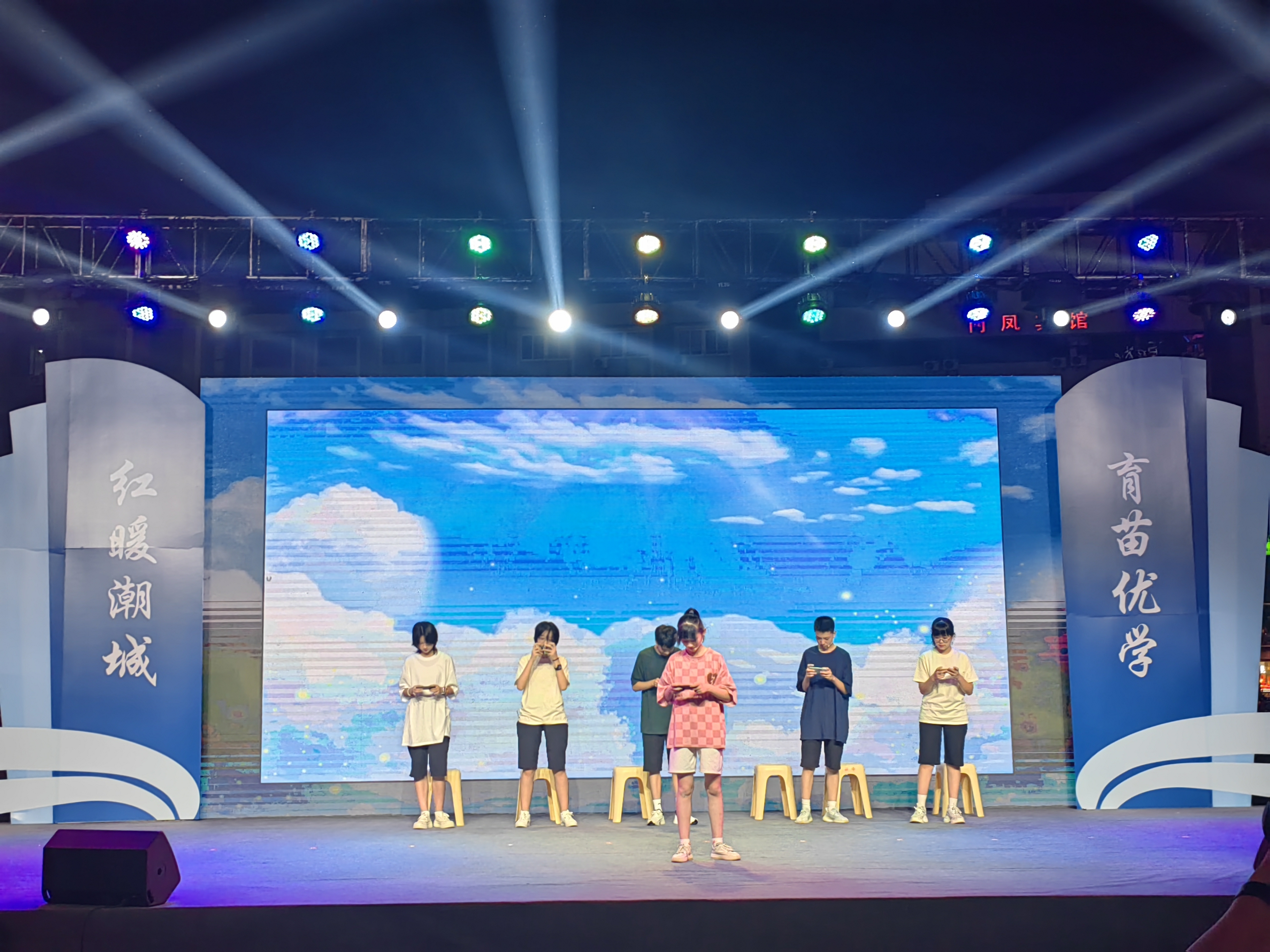 2024.7.13日晚在海宁市人民广场学校校园心理剧《不做手机控》参加海宁市“潮城优学”党建品牌发布仪式
