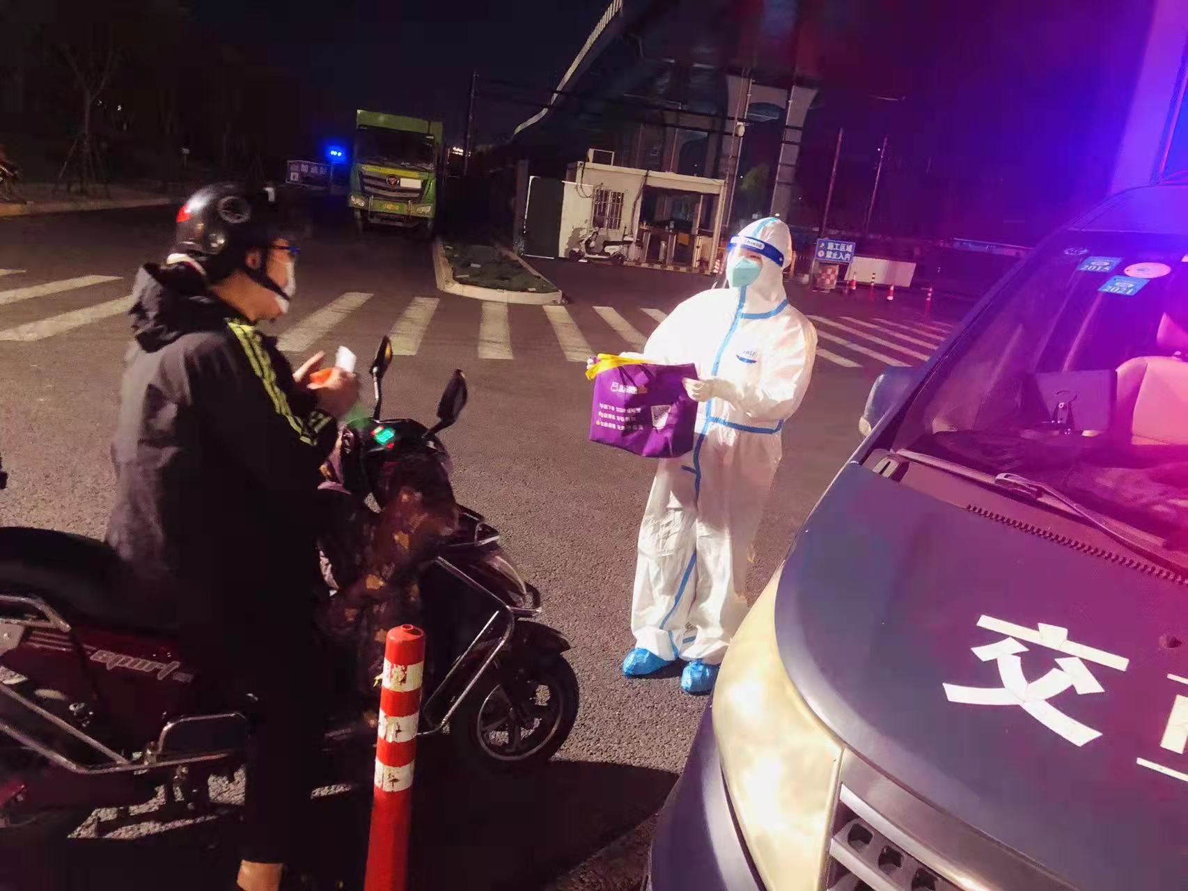 健康小站最前线丨深夜特意骑车为大白送来夜宵,这位小姐姐太美了 钱江晚报·小时新闻 通讯员 马学琴 5月17日晚,钱报小时健康小站、杭州市上城区湖滨街道社区卫生服务中心主管护师娄莎莎正驻守在钱塘快速路与同协南路交叉口的高速路口卡点,为大货车司机进行核酸采样。 几小时后,接近凌晨,娄莎莎与一同值守的警察已饥肠辘辘,两人正琢磨着下班后去吃什么。此时,一个骑电动车的身影飞驰而来。 “我们这点是为大货车司机专设的核酸检测点,如果你需要检测.......” 还没等娄莎莎说完话,骑车的小姐姐开口了:“大白,你们辛苦了,这边有些小吃希望你们能收下!” 这一瞬间,娄莎莎心头涌起一股暖流,望着眼前这份爱心“夜宵”,她本想婉言拒绝,可小姐姐却执意让她收下。 在娄莎莎的反复询问下,这名小姐姐并不愿意留下姓名,只说自己是做餐饮行业的,把这些送给大白是应该的。 待娄莎莎打开包裹,里面是炸鸡、鸡翅、琵琶......一应俱全。 “抗击疫情离不开所有人的努力,我们医务人员驻点防疫是义不容辞的责任。同样,坚守岗位的每个人都值得尊敬的,就像这位送夜宵的姐姐,凌晨驰骋穿梭在杭城,为我们送来温暖,同样也这座城市传递着爱。大家互助互爱,必定所向披靡,一定能打赢这场没有硝烟的战争!”娄莎莎由衷感谢这位小姐姐:她是杭城黑夜里的一束光,明亮而温暖。
