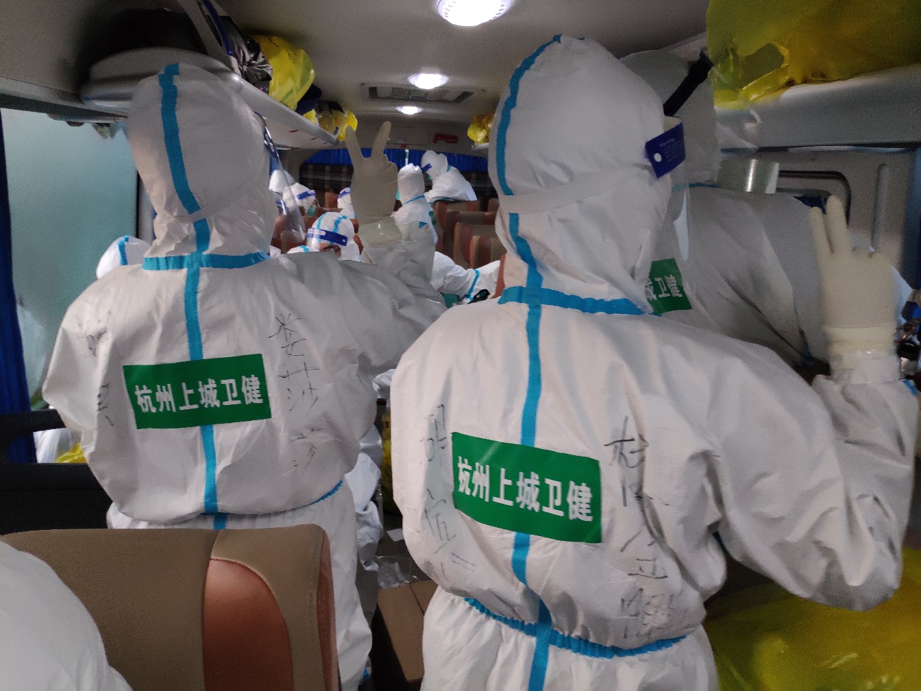 小时健康小站最前线丨 星夜出征,他们加入上城卫健援沪核酸检测 钱江晚报·小时新闻 通讯员 马学琴 4月4日凌晨2时许,上城区援沪采样队火速集结完毕,星夜启程奔赴上海,投入这一场守望相助的战“疫”当中。队伍中,也出现了两张熟悉的面孔,他们是钱报小时健康小站、杭州市上城区湖滨街道社区卫生服务中心的青年干将楼金鹏、娄莎莎。 这支队伍由1名领队、2名院感专家、50名采样医务人员和1名司机共54名成员组成。这一天,上城区“五四”医疗队也由此而生。 为了能够准时集合,楼金鹏、娄莎莎前一天在医院线上学习驰援的采样流程、院感管理后,便在各自办公室和衣而睡。休息1小时后,踏着星辰,他们于4月4日7点抵达现场正式开始采样,历时7小时,截止14:30他们与团队一起采样24973人。 当日傍晚,回到杭州入住隔离酒店,却因上城区相继出现阳性病例而一直在路上。小区、商场、建筑工地、学校……分不清白天和黑夜,他们24小时备战,奋战10天,他们总共出动应急采样17次,合力“五四”成员共计采样83167人次。 “只睡了一个小时,人生中第一次使用成人尿不湿,十二小时超长待机,滴水未进。许多上海市民听说我们是杭州来支援的队伍,对我们嘘寒问暖表示感谢,直夸我们专业,还送上了鲜花和自己亲手写的明信片。那一刻,感觉自己再苦再累也值得了。”湖滨中心院感专管员娄莎莎发表驰援感想。 在一旁的95后小伙子楼金鹏也说:“沪浙一家亲,一方有难,八方支援,作为医务人员,守望相助是我们义不容辞的责任。”