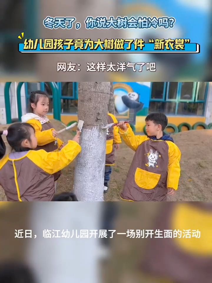 临江幼儿园的娃娃们化身为冬日魔术师,为大树穿上五彩斑斓的“冬衣”#潮闻小记者#