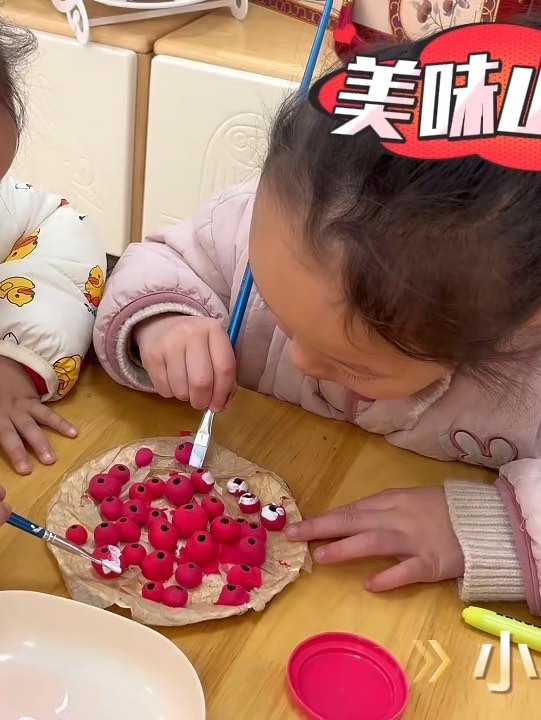 冬至到,临涛幼儿园里童趣生。萌娃捞“汤圆”、“绘”冬至,熬制暖汤,“晒”鱼干。