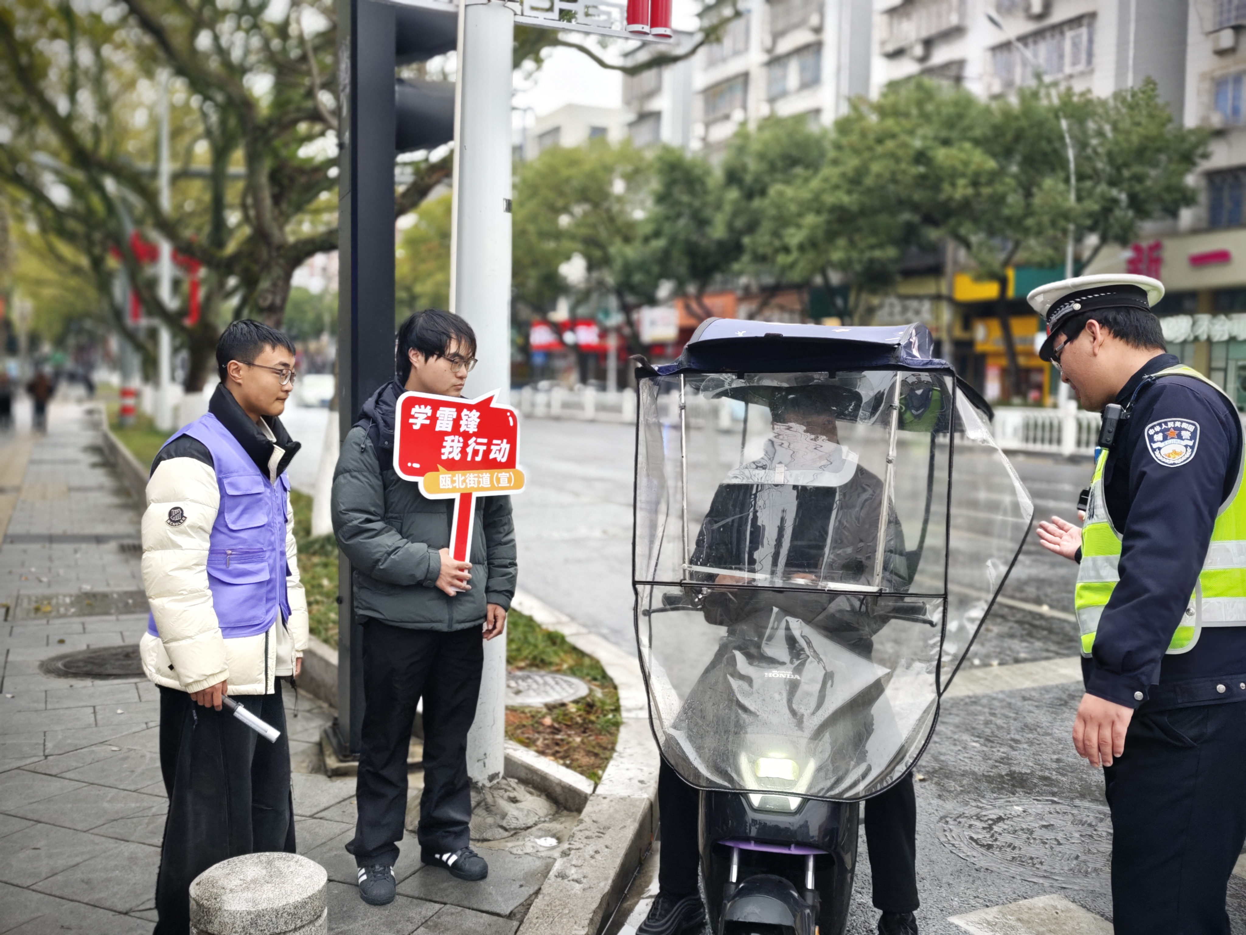 “学雷锋·我行动”文明交通主题实践活动在永嘉县瓯北街道开展。为大力弘扬雷锋精神,普及文明交通理念,增强辖区居民特别是青少年的交通安全意识,近日,瓯北街道新时代文明实践所联合火萤光光志愿服务队、永嘉县公安局交通管理大队、永嘉嘉惠社会服务中心,共同开展“学雷锋·我行动”之“浙江有礼·平凡之光”文明交通主题实践活动,以理论宣讲+实地劝导的形式,让安全出行、文明出行理念深入人心。