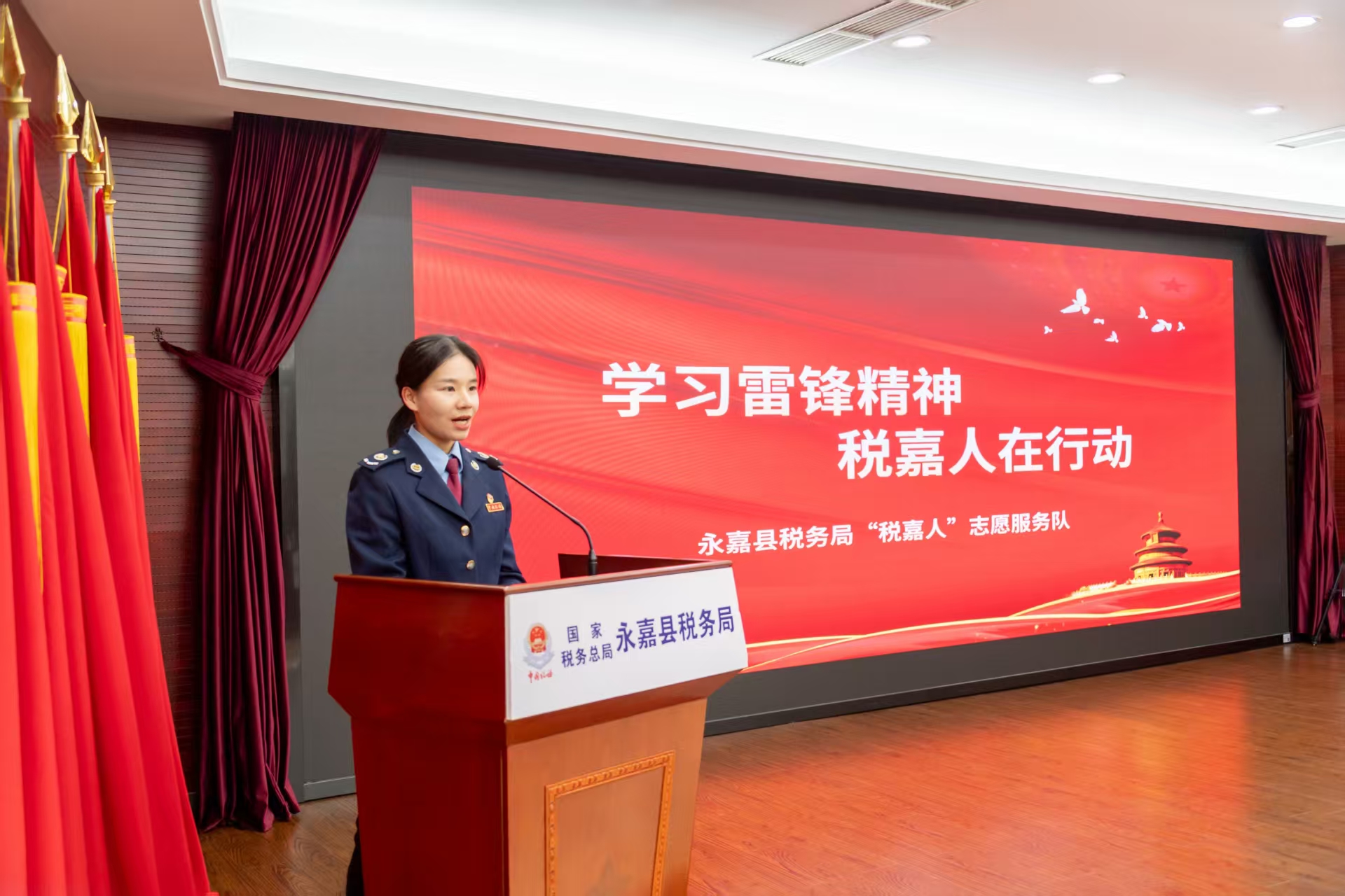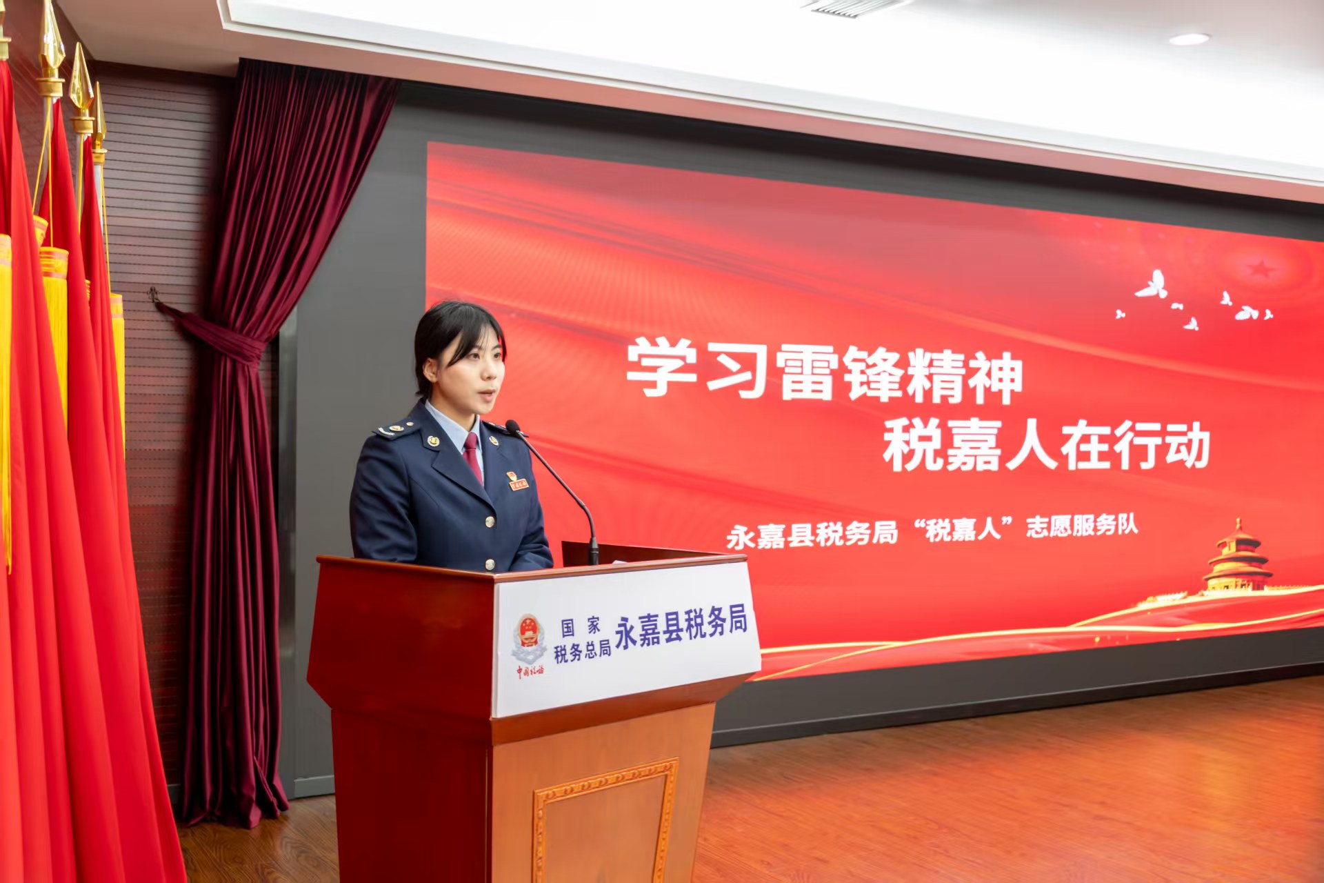 永嘉县税务局开展“学雷锋”志愿服务主题月启动仪式。 三月,不仅是一个季节的更替,更是一份精神的召唤,每当这个时节来临,我们总会想起一个温暖而闪亮的名字——雷锋。2026年3月5日是第63个“学雷锋纪念日”,也是中国青年志愿者服务日,为深入弘扬雷锋精神,大力弘扬“奉献、友爱、互助、进步”的志愿精神,3月5日,永嘉县税务局团委举行“学习雷锋精神 税嘉人在行动”志愿服务主题月启动仪式,激励“税嘉人”青年志愿服务队职工立足岗位、奉献社会,为县税务局创建全国文明单位贡献志愿力量。 一首赞歌,唱响精神传承 “学习雷锋好榜样,忠于革命忠于党……”活动在全体人员齐声高唱的嘹亮歌声中拉开帷幕。熟悉的旋律响起,铿锵有力的歌声回荡在会场,仿佛将大家带回了那个火热的年代。每一位永嘉税务青年志愿者用歌声表达对雷锋同志的深切缅怀,也唱出了传承雷锋精神、忠诚担当奉献的坚定信念。 一段影像,重温榜样力量 随后,全体人员共同观看了电影《雷锋》经典片段。黑白影像中,雷锋同志带病参加工地义务劳动、冒雨送大嫂回家、省下津贴支援灾区的一幕幕感人场景,再次触动了在场每一个人的心弦。青年志愿者们表示:“雷锋精神从来不是尘封的记忆,雷锋同志那颗为人民服务的赤子之心,永远是我们学习的榜样。” 一场宣讲,讲述身边感动 在热烈的掌声中,我局“嘉乡”宣讲团成员陈昭凝同志走上讲台,带来了一场接地气、有温度的雷锋精神主题宣讲。她从雷锋同志服务人民、助人为乐的奉献精神,干一行爱一行、专一行精一行的敬业精神,锐意进取、自强不息的创新精神,艰苦奋斗、勤俭节约的创业精神,用朴实的语言、鲜活的事例,深刻诠释了雷锋精神的本质和时代内涵。 一份倡议,汇聚青春力量 “青年朋友们,雷锋精神,人人可学;奉献爱心,处处可为……”局团委书记王倩现场宣读志愿服务倡议书,向全体青年干部发出号召:立足岗位做雷锋精神的践行者,走进群众做雷锋精神的播撒者,示范引领做雷锋精神的传承者,久久为功做雷锋精神的坚守者,让“税嘉人”的旗帜在基层一线高高飘扬。 一体联动,营造浓厚氛围 各税务分局(所)积极响应,同步组织青年志愿者们学习雷锋精神、开展交流研讨,并结合本单位实际谋划各具特色的志愿服务活动,在全局迅速掀起学雷锋热潮。 接下来,永嘉县税务局团委将以“学习雷锋精神 税嘉人在行动”主题月为契机,持续开展岗位建功、便民服务、帮扶关爱等系列志愿活动,引导广大干部职工将雷锋精神内化于心、外化于行,以实际行动书写新时代雷锋故事,让“税嘉人”的身影成为这个春天最温暖的风景。