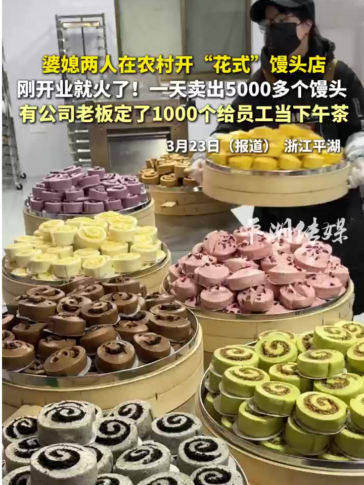 婆媳两人在平湖农村开“花式”馒头店,刚开业就火了!一天卖出5000多个馒头 ,有公司老板定了1000个给员工当下午茶