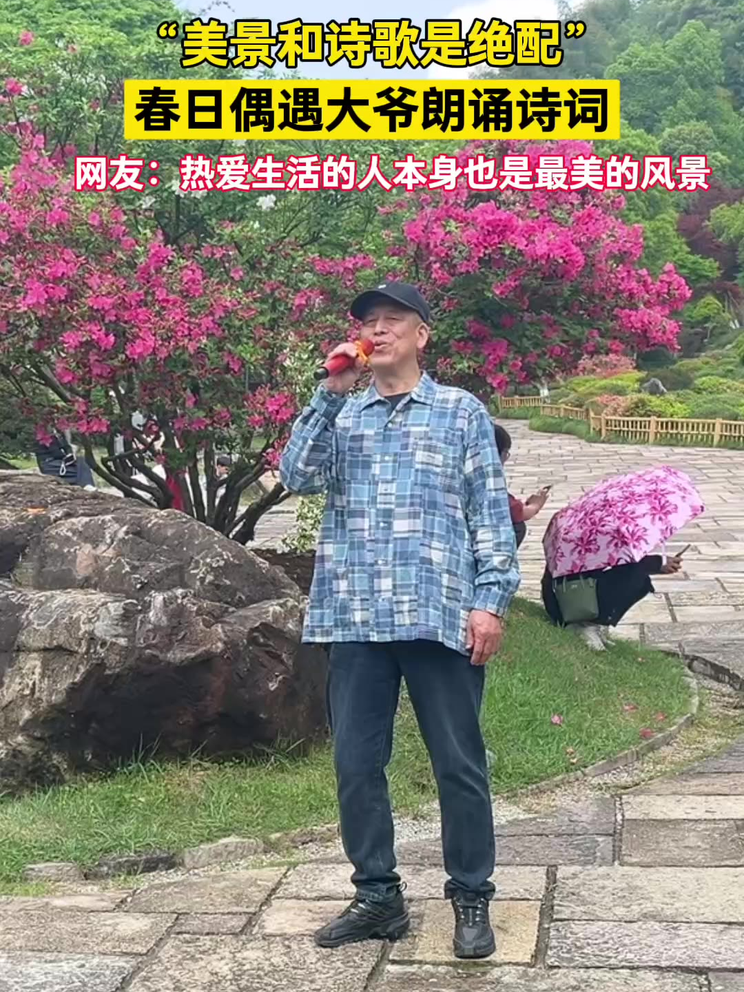 “美景和诗歌是绝配”,春日里,大爷闲逛德清下渚湖奇幻谷杜鹃谷,忍不住朗诵诗词引围观
