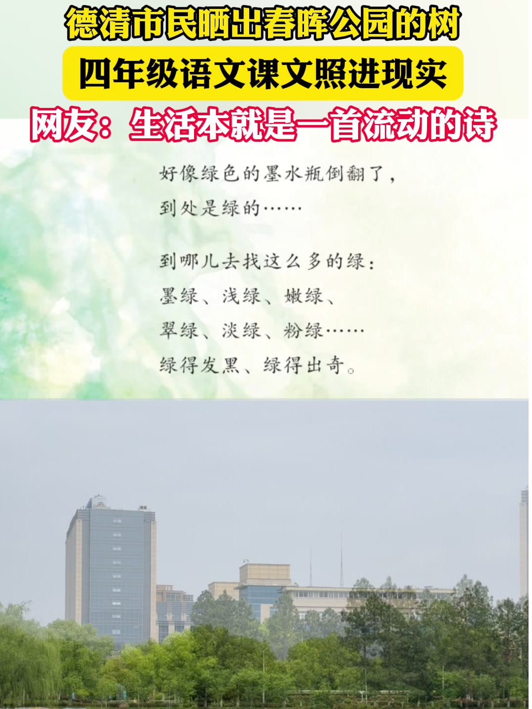 德清市民晒出春晖公园的树,四年级语文课文照进现实