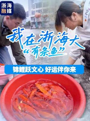 锦鲤入水,祝福满塘!浙江海洋大学文心湖迎来新伙伴!我在浙海大有条鱼~(视频制作:张庭瑜、何梓晗、暨巧燕、张棋昊、毛向程)