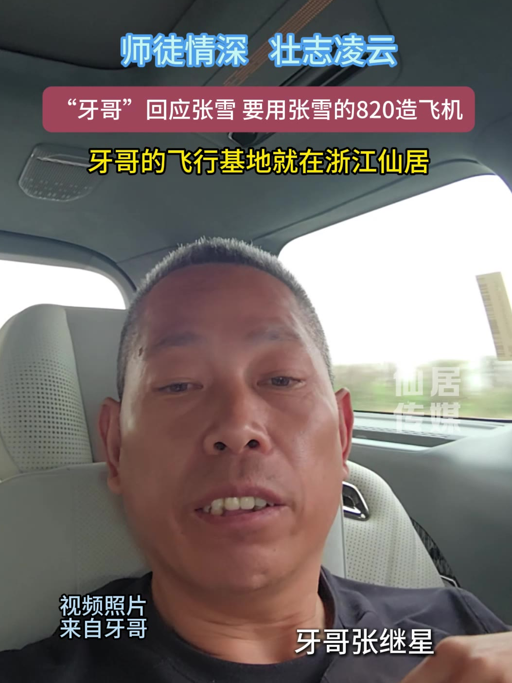 师徒情深,壮志凌云!“牙哥”回应张雪,要用张雪的820造飞机,牙哥的飞行基地就在浙江仙居!