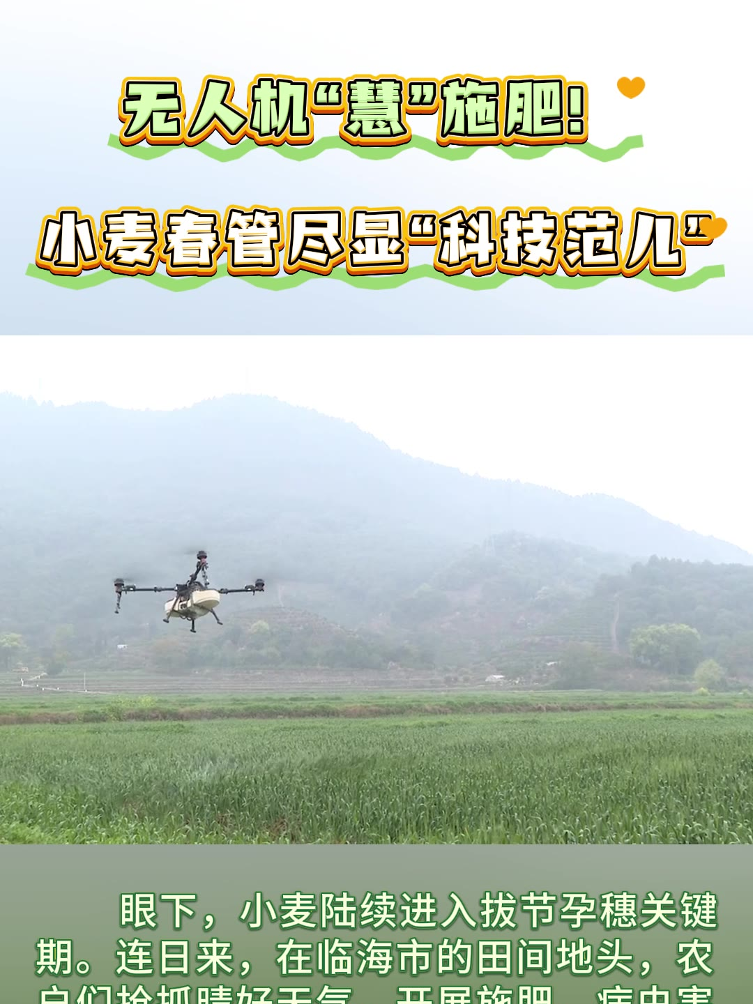 无人机“慧”施肥!小麦春管尽显“科技范儿"