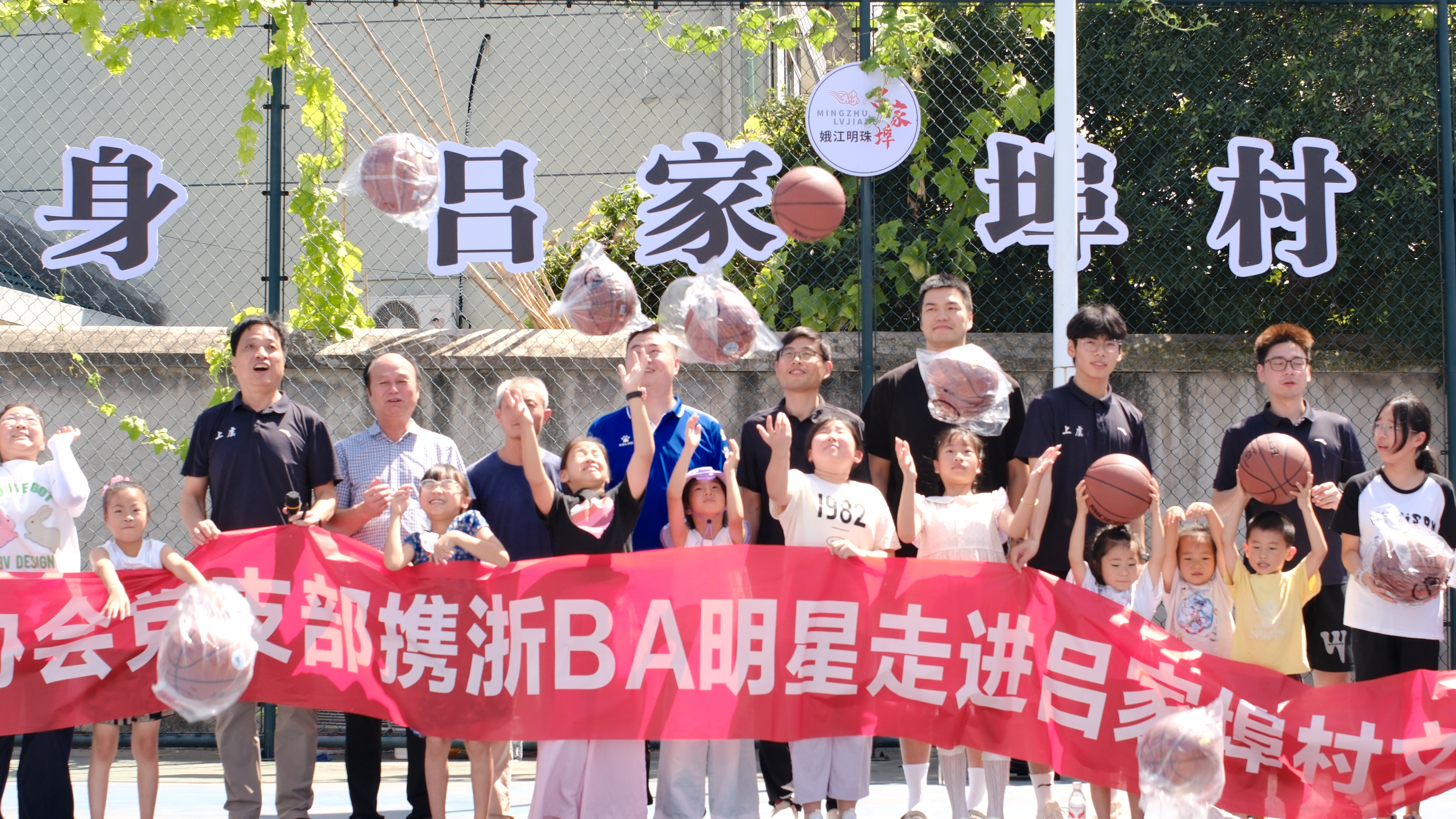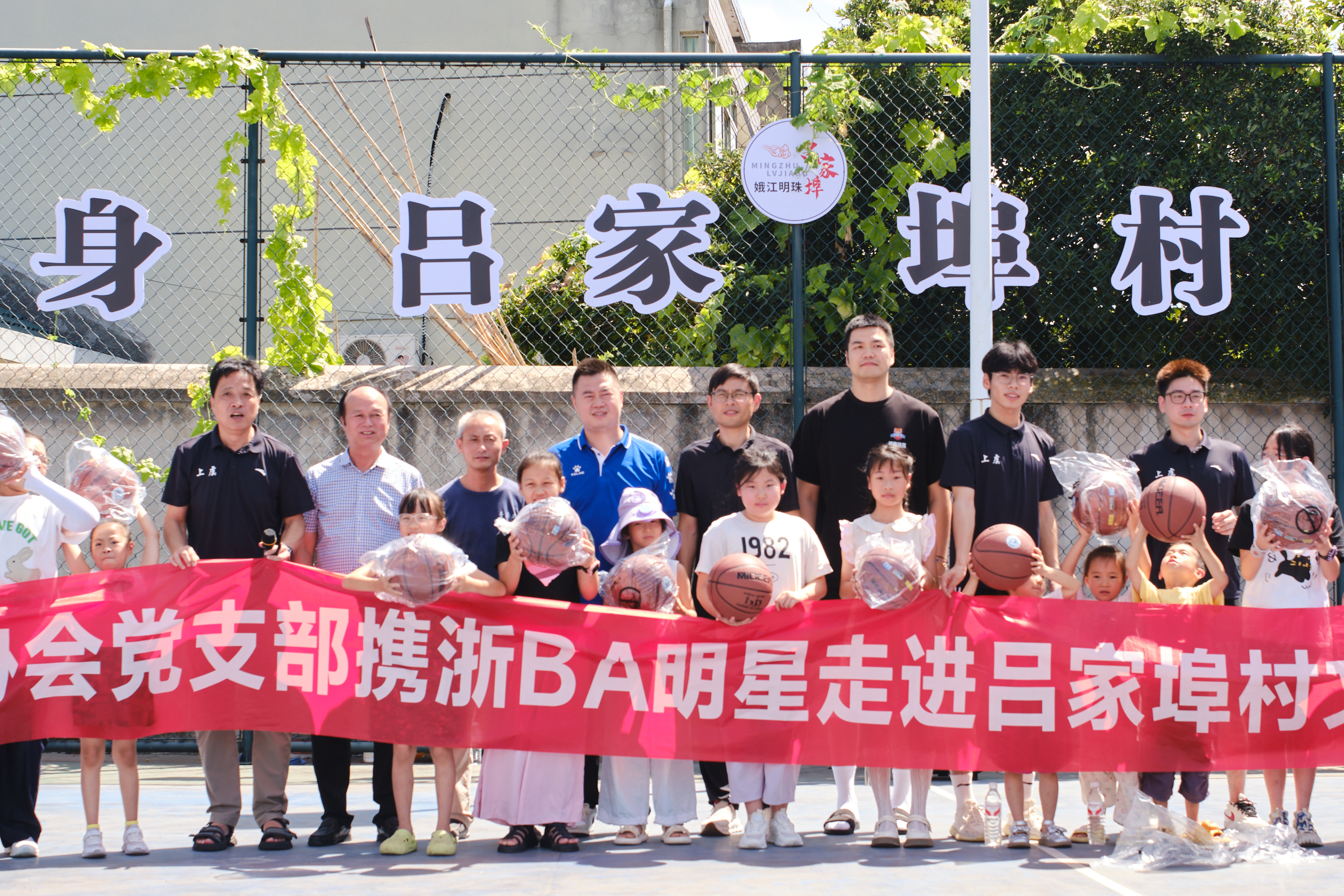 篮球明星进村来!上虞篮协党支部携浙BA球星点亮吕家埠“全民健身日” 为积极响应第十七个“全民健身日”的号召,推动篮球运动深入基层,丰富村民文体生活,8月7日上午10点,一场别开生面的篮球公益活动在崧厦街道吕家埠村文化礼堂篮球场火热举行。本次活动由上虞区篮球协会党支部精心组织,特邀多位浙BA(浙江省男子篮球联赛)上虞本土明星球员及资深教练走进吕家埠村,为村里的孩子们带来了一场充满激情与欢乐的篮球启蒙课。