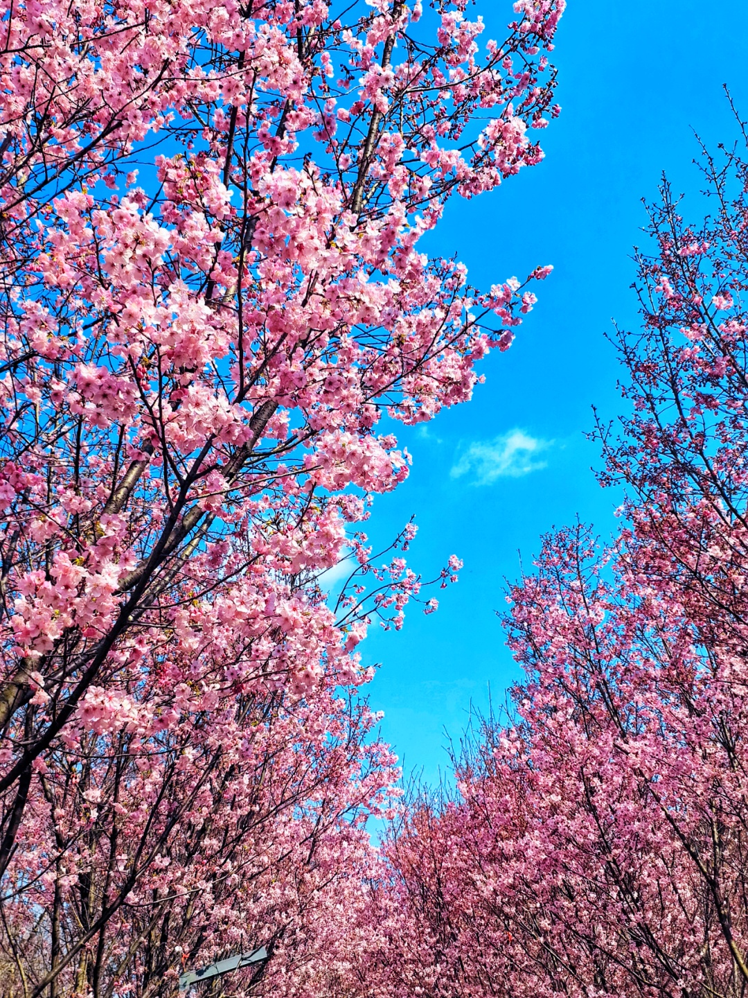 远远的,便望见一片粉色的烟霞浮动在道路两旁粉白的花瓣如云似雾将大地装点成一个温柔的梦境。 它们探出鲜艳的笑靥,它们站在路边,像春天派来的信使,悄无声息地叩响小城的心事。那不是寻常的花开,倒像是谁打翻了调色盘,让粉色的云朵从天上飘落人间。走近些,才看清那是一株株樱花树,它们携着积蓄了整个冬日的温柔,在春风里尽情绽放。它们一簇簇地挤在枝头,多的有五六朵,少的也有三四朵。花瓣叠着花瓣,谁也不肯让谁,却又不争不抢,只是安静地开着,开成春天最温柔的模样。一路繁花相伴,满目皆是浪漫。 光影流转间,樱花便有了千万种姿态“——有时是淡淡的粉白,像少女脸颊的红晕。有时是浅浅的绯红,像天边初染的霞光;待到云遮住太阳,它们又恢复了素净的模样。漫步花道,步步是景,徜徉花海间,或驻足赏花闲谈,或拍照留影,在.惬意与温馨中,把春日的美好都揉进了这片温柔花海里。 #春日风景# #做自己的春天#