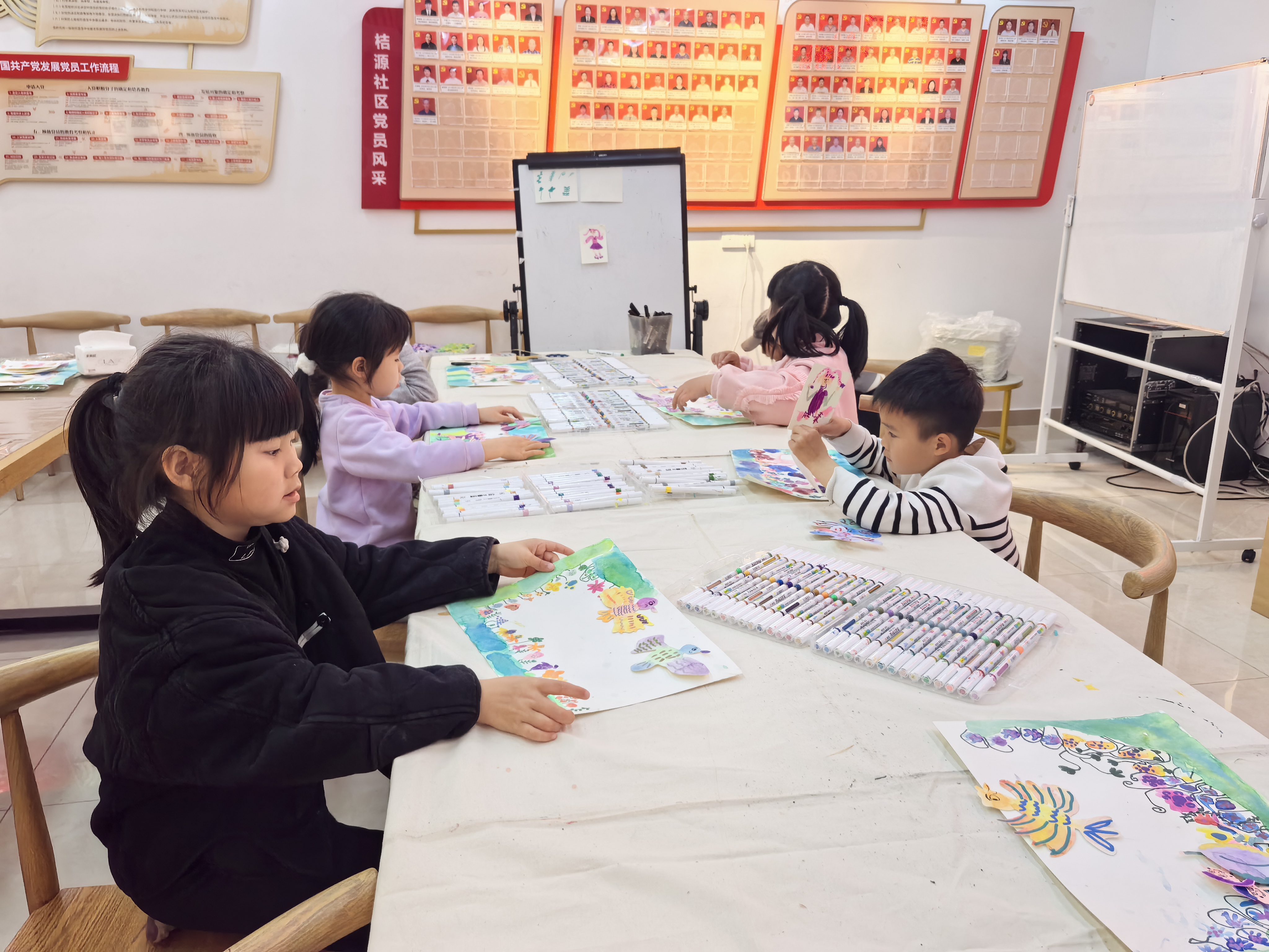 |童绘春日暖 美育润童心 “老师,你看我给小兔子画了彩虹色的耳朵!”“我要把春天的花园都搬到画纸上!”近日,北城街道桔源社区“桔源讲堂”内,清脆的童声此起彼伏,“小青桔”儿童美育课堂在此温情启幕,让孩子们在色彩与创意的世界里,解锁美的密码。 课堂上,志愿者老师化身“艺术引路人”,摒弃刻板教学,用生动讲解引导孩子们大胆创作。从色彩搭配到构图技巧,从线条勾勒到立体剪裁,老师耐心拆解创作要点,鼓励孩子们跳出框架、放飞想象。孩子们围坐桌前,眼神专注,马克笔肆意挥洒,花草、卡通形象、剪纸拼接等作品各具特色,每一笔都藏着纯粹的奇思妙想,创作间隙,大家互相分享灵感、点评作品,暖意满满。 此次美育课堂,不仅为社区少儿搭建了展示才华的平台,更以艺术为纽带,丰富了社区文化服务,让美浸润童心。社区将持续深耕少儿美育,推出更多优质活动,让艺术之花滋养孩子们成长,为和谐社区注入源源不断的温暖力量。