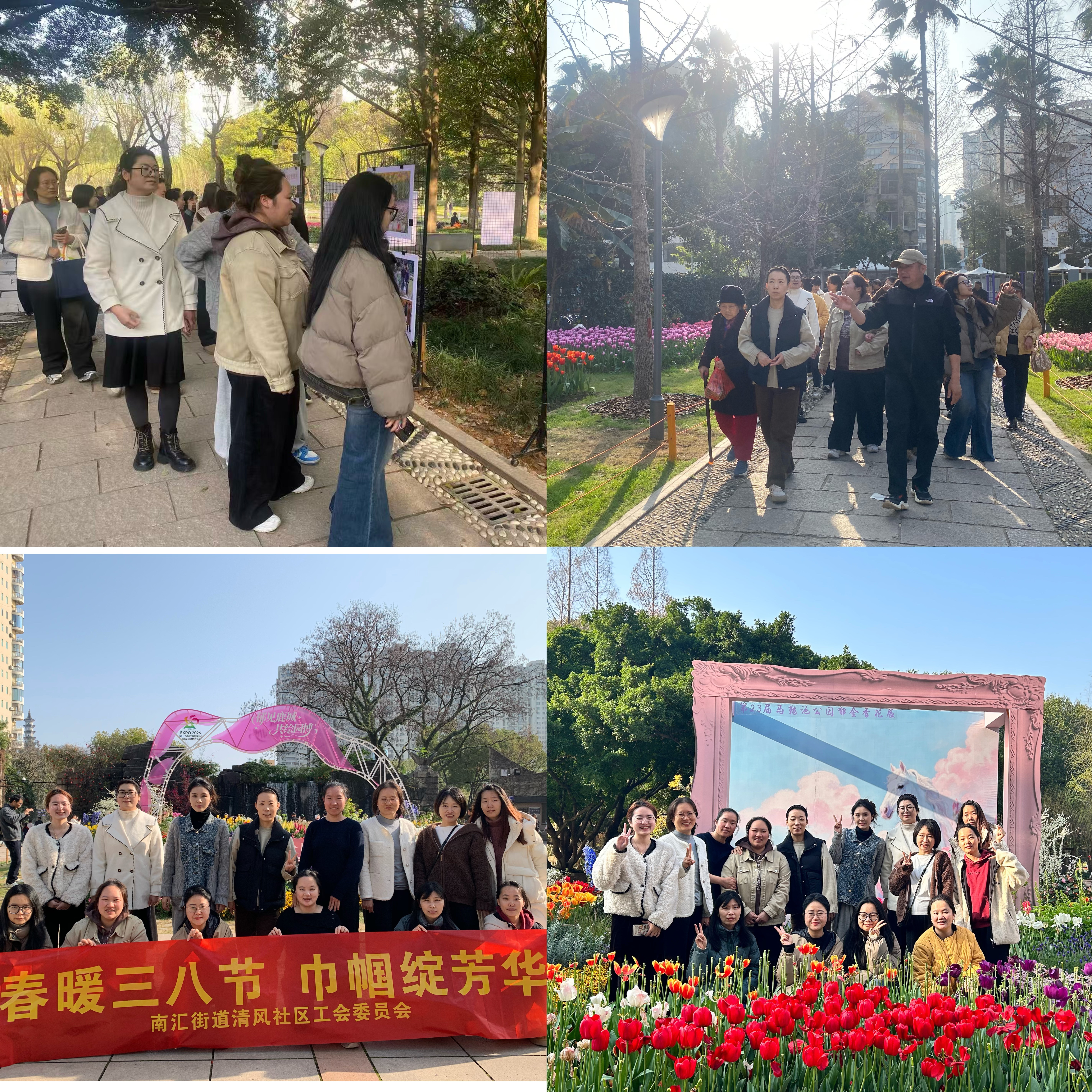 【春暖三八节 巾帼绽芳华——清风社区工会开展三八妇女节赏花春游活动】 阳春三月,春暖花开。为庆祝“三八”国际妇女节,丰富社区女性职工的精神文化生活,南汇清风社区工会组织开展了“春暖三八节 巾帼绽芳华”主题赏花春游活动,让女性同胞们在繁忙的工作之余,共赴一场与春天的约会。 大家迎着和煦的春风抵达公园,马鞍池公园相关负责人代领着女职工们参观美不胜收的花展并详细介绍了目前公园里的70余种花类,女职工们三五成群漫步花径,时而驻足欣赏盛放的春花,时而用手机镜头定格“人面桃花相映红”的美丽瞬间。大家在花海中畅谈工作生活,分享育儿趣事与职场感悟,欢声笑语回荡在春光里。 活动还特别设置了“春日寻色”创意打卡环节,鼓励大家用独特视角记录春日美景,发现身边的小美好。不少年轻职工现场发起朋友圈“九宫格”大赛,让节日喜悦在指尖传递。 此次春游赏花活动,不仅让女性职工亲近自然、放松身心,更增进了彼此情谊,增强了团队凝聚力。大家纷纷表示,将以更饱满的热情投入工作,在社区治理中绽放“她力量”,展现新时代女性的别样芳华。