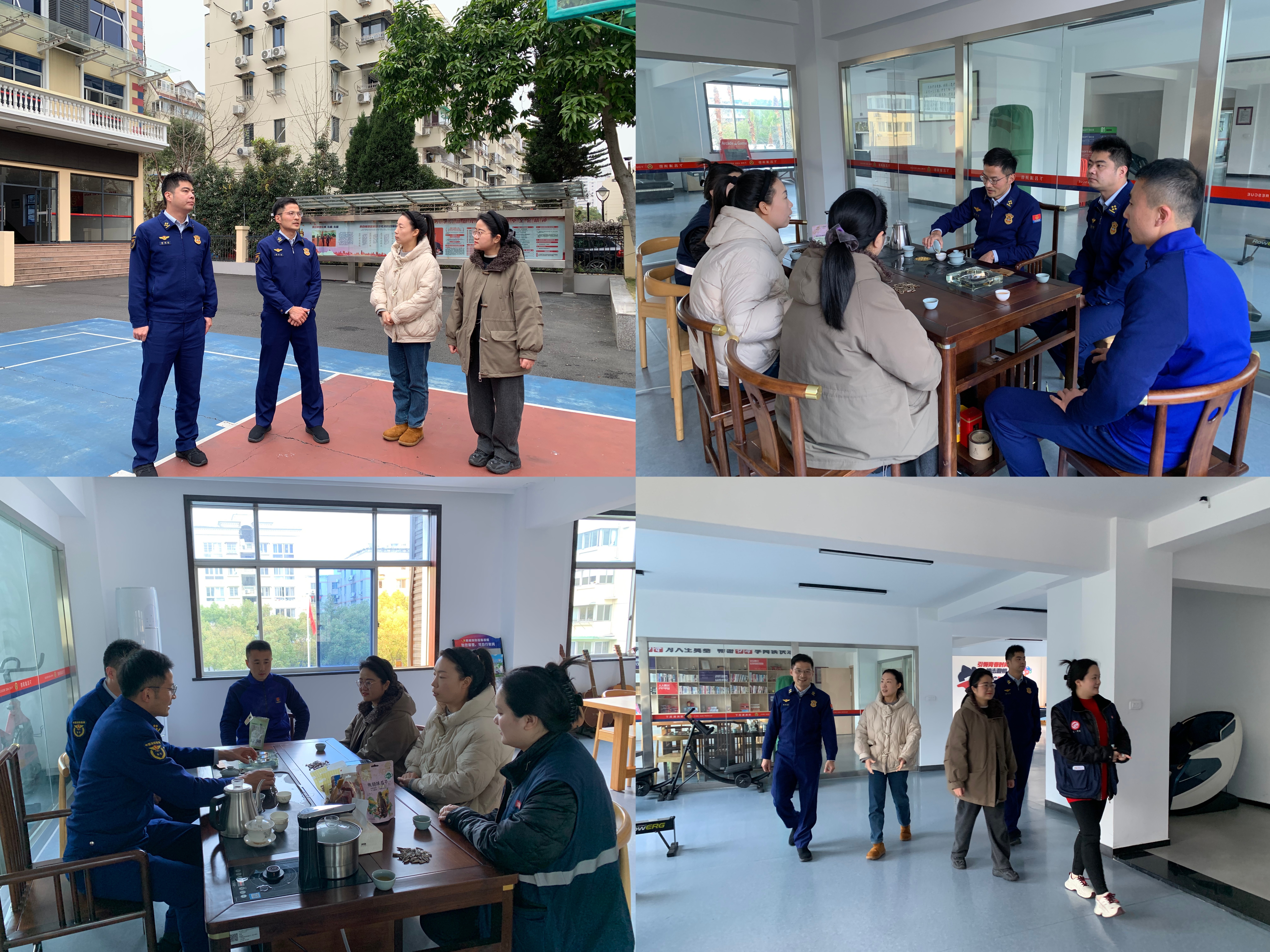 【清风社区走进消防救援站 致敬“火焰蓝”】 为进一步密切社区与辖区共建单位的联系,学习消防知识,增强安全意识,清风社区组织开展了走访慰问活动。 社区党委书记、居委会主任张恋带队,前往下吕浦消防救援站进行参观拜访,向常年奋战在救援一线的消防指战员们致以诚挚的问候。张恋主任一行实地参观了消防车辆和装备器材,详细了解了消防员的日常训练与生活情况,并与消防站负责人就如何进一步加强社区消防安全工作、开展应急演练等进行了深入交流。 此次拜访不仅加深了社区与消防站之间的情谊,也为双方今后在消防安全宣传、隐患排查等方面的联动协作打下了更坚实的基础。下一步,清风社区将持续深化共建合作,共同守护居民生命财产安全。