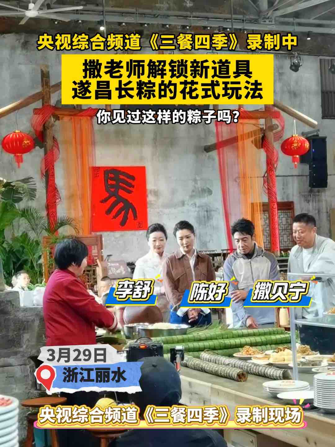 央视综合频道《三餐四季》录制中|撒老师解锁新道具,遂昌长粽的花式玩法,你见过这样的粽子吗?