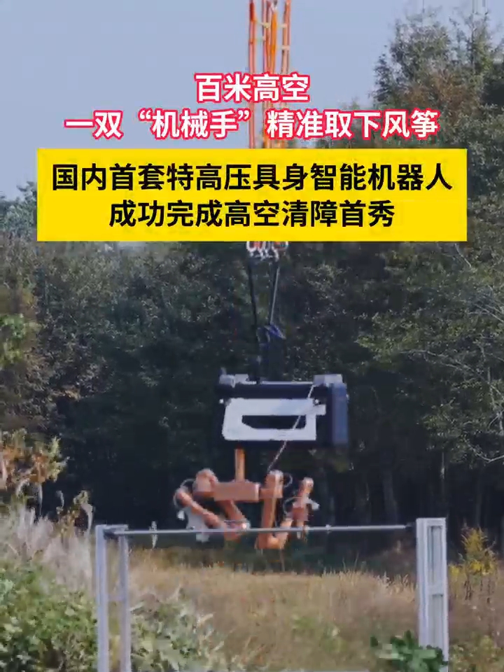 国内首套特高压具身智能机器人成功完成高空清障首秀。