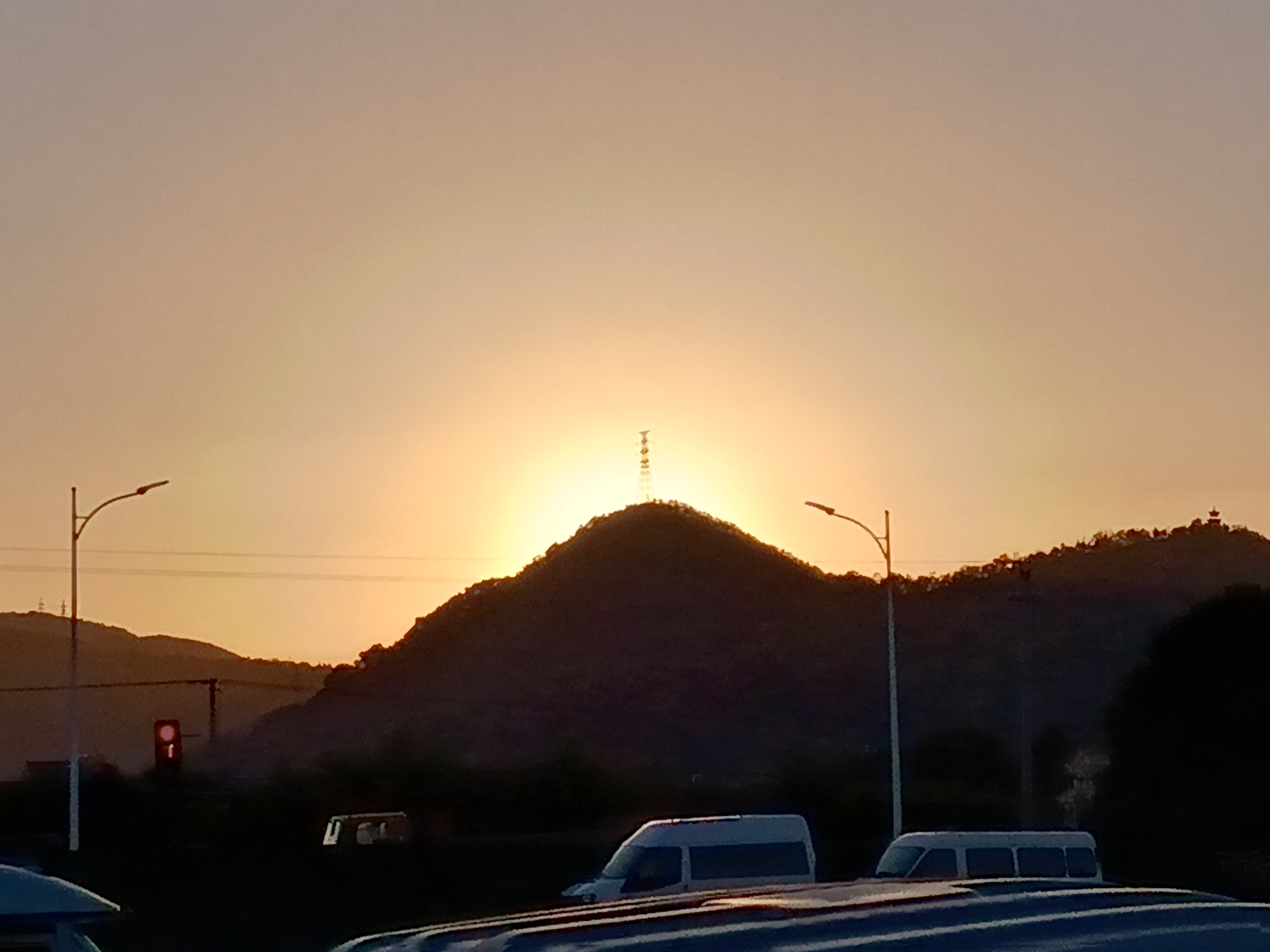 象山半岛的黄昏,总藏着几分神秘与壮美。夕阳缓缓西沉,将天际染成一片绚烂的橙红,云朵被镶上了金边,仿佛是大自然最精致的织锦。山峦起伏,轮廓在余晖中愈发柔和,每一座山峰都像是被温柔地抚摸过,显得格外宁静而庄严。 就在这时,山顶之上,一束奇异的光芒穿透云层,洒落下来,宛如天界之门轻启,祥瑞之气弥漫四周。这光,不刺眼,却足以照亮人心,它似乎带着某种不可言喻的力量,让人不由自主地停下脚步,仰望这片神圣的天空。 山脚下,海浪轻拍着岸边,与山顶的祥光遥相呼应,海天一色间,仿佛整个世界都被这份宁静与祥和所包围。人们或驻足观赏,或闭目祈愿,在这象山半岛的日落时分,共同见证这份来自大自然的奇迹,心灵得到了前所未有的洗涤与安宁。 东方励红拍摄2025年11月15日象山县