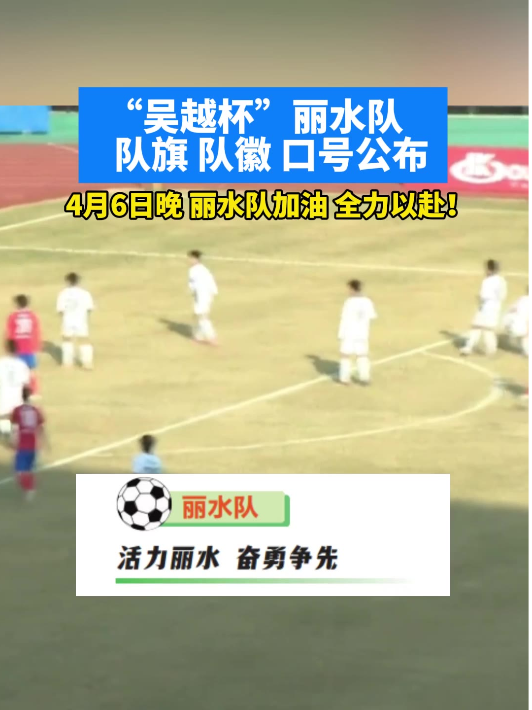 “吴越杯”丽水队队旗队徽口号公布,4月6日晚丽水队加油!