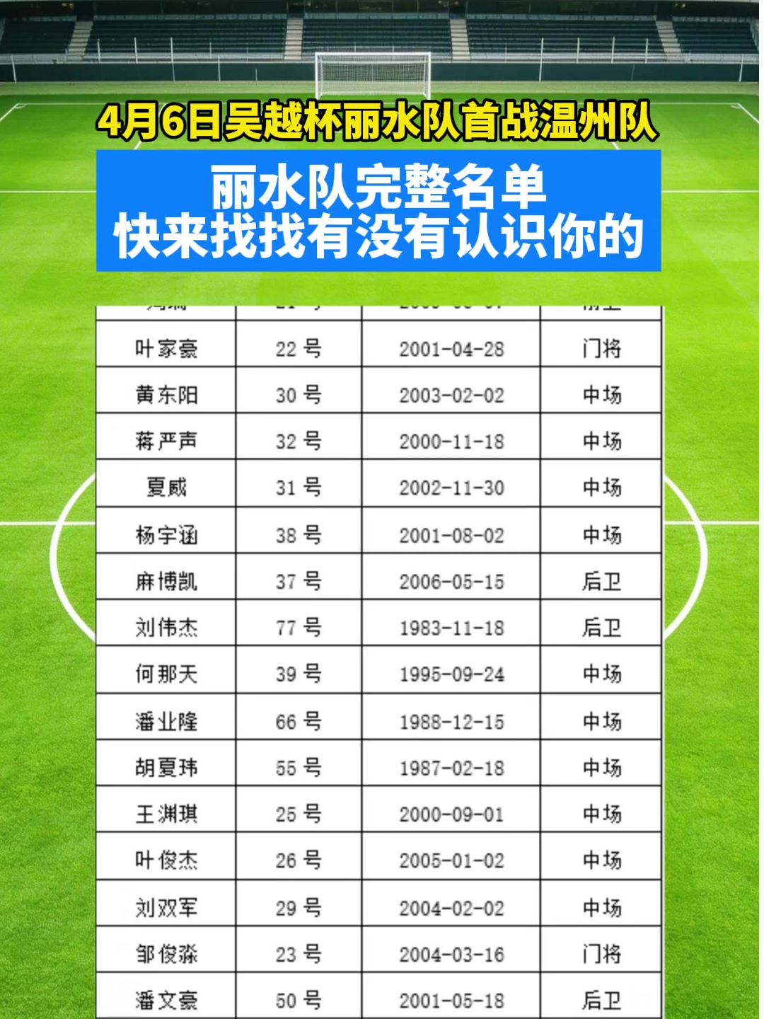 4月6日吴越杯丽水队首战温州队,丽水队完整名单,快来找找有没有认识你的