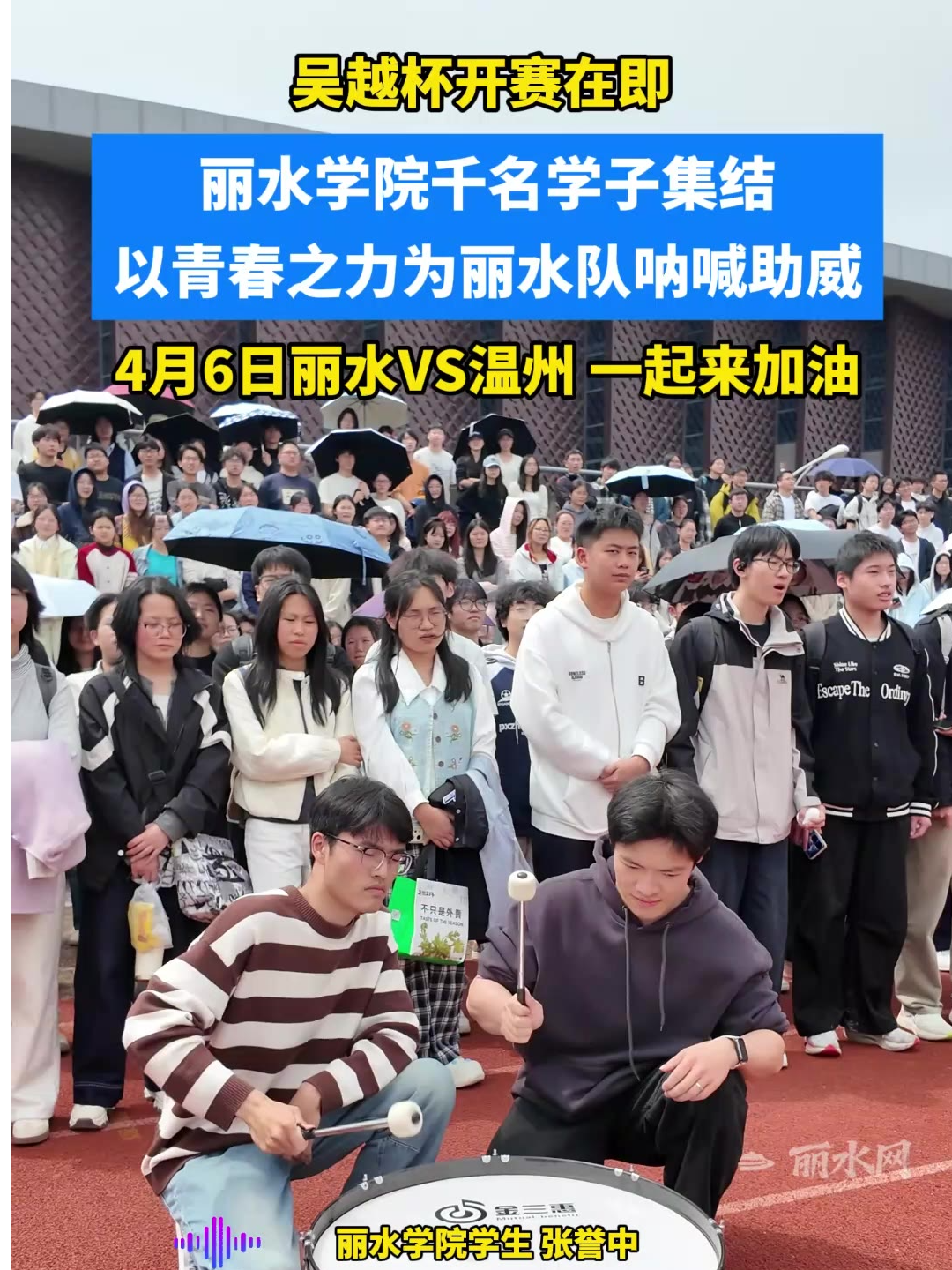 吴越杯开赛在即,丽水学院千名学子集结,以青春之力为丽水队呐喊助威,4月6日丽水VS温州,一起来加油