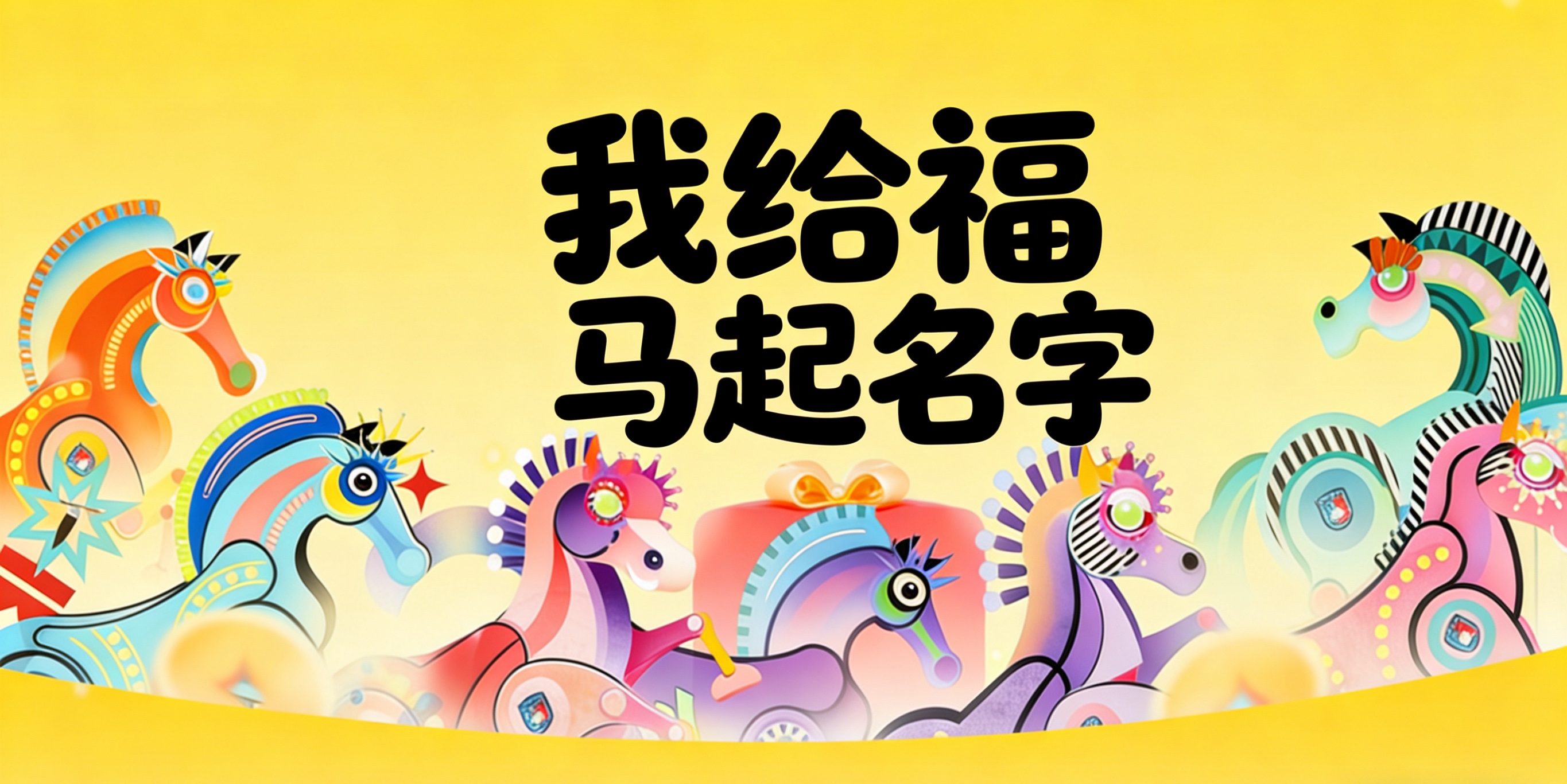 结合图片中七匹福马的特征,也为了贴合小朋友朗朗上口的需求,还要精准对应每匹马的特点,用了可爱的叠词为七匹马命名。 蓄势待发的 蓄蓄马 策马奔腾的 腾腾马 一马当先的 先先马 风驰电掣的 驰驰马 走马观花的 花花马 争先恐后的 争争马 马到成功的 胜胜马