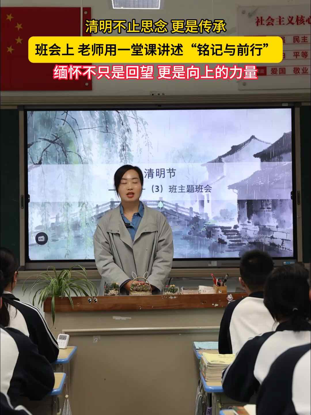 清明节主题班会上 老师用一堂课讲述“铭记与前行”