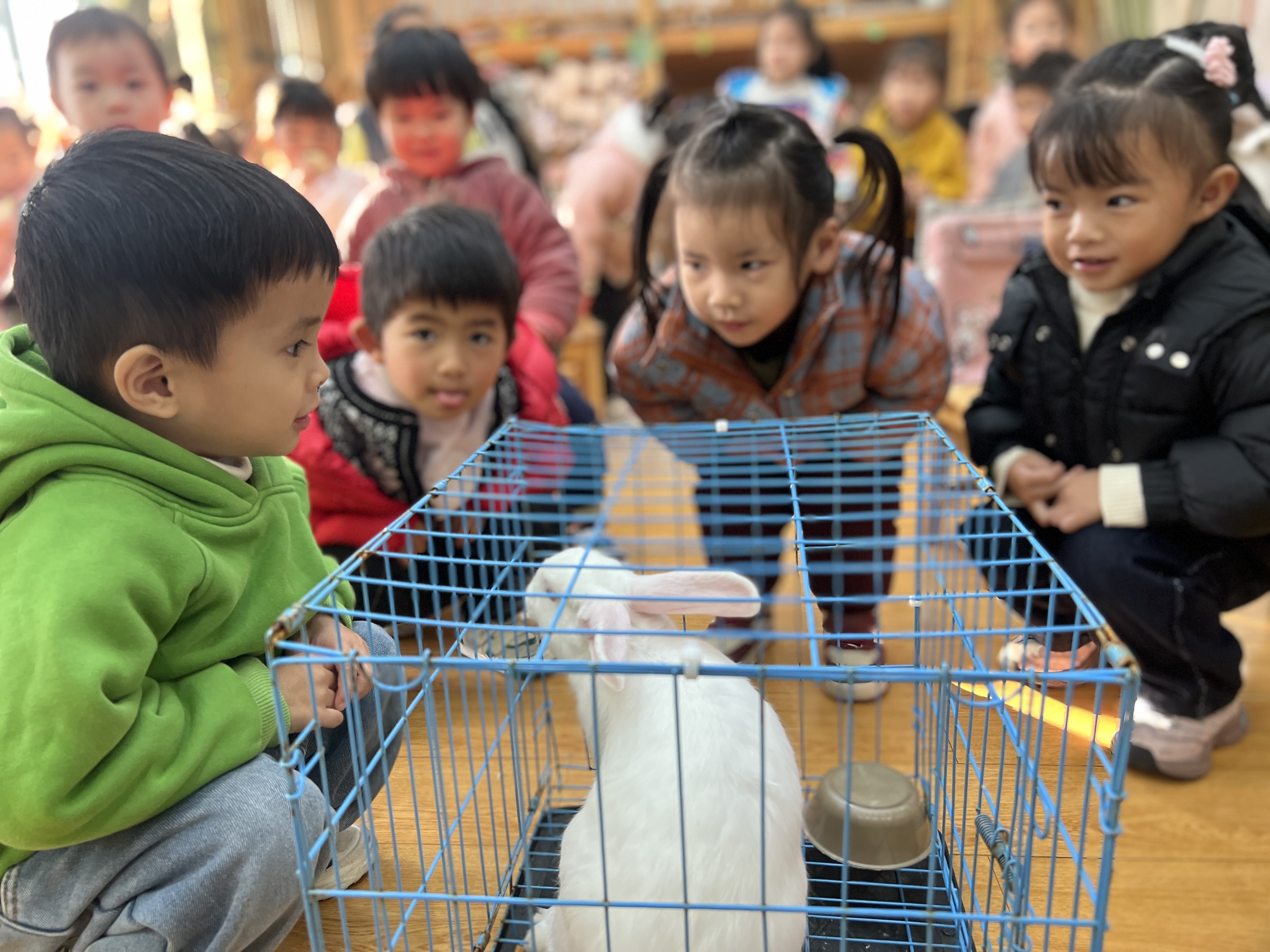 小兔子“做客”幼儿园 萌娃乐开怀 近日,兰亭街道阮江幼儿园小班的教室里迎来了特别的“小客人”两只可爱的小兔子。 可爱的兔子被安置在精致的笼子里,一进入教室,就立刻吸引了孩子们的目光。小朋友们在老师的组织下,有序地围在笼子旁,好奇地观察着这些可爱的小动物。有的孩子大胆地伸出小手,轻轻给兔子喂食青菜叶,脸上洋溢着兴奋与喜悦;有的孩子则蹲在一旁,仔细观察兔子的一举一动,并不时与身边的小伙伴交流讨论。“兔子的毛摸起来一定很软!”“它吃菜叶的样子太有趣啦!”孩子们天真烂漫的话语和欢快的笑声充满了整个教室。 此次活动是幼儿园开展的自然教育的一部分,旨在让孩子们通过与小动物的亲密接触,培养他们的观察力、爱心和对自然的热爱之情。希望通过这样的活动,让孩子们在轻松愉快的氛围中学习和成长,了解更多关于动物的知识,增强保护动物的意识。