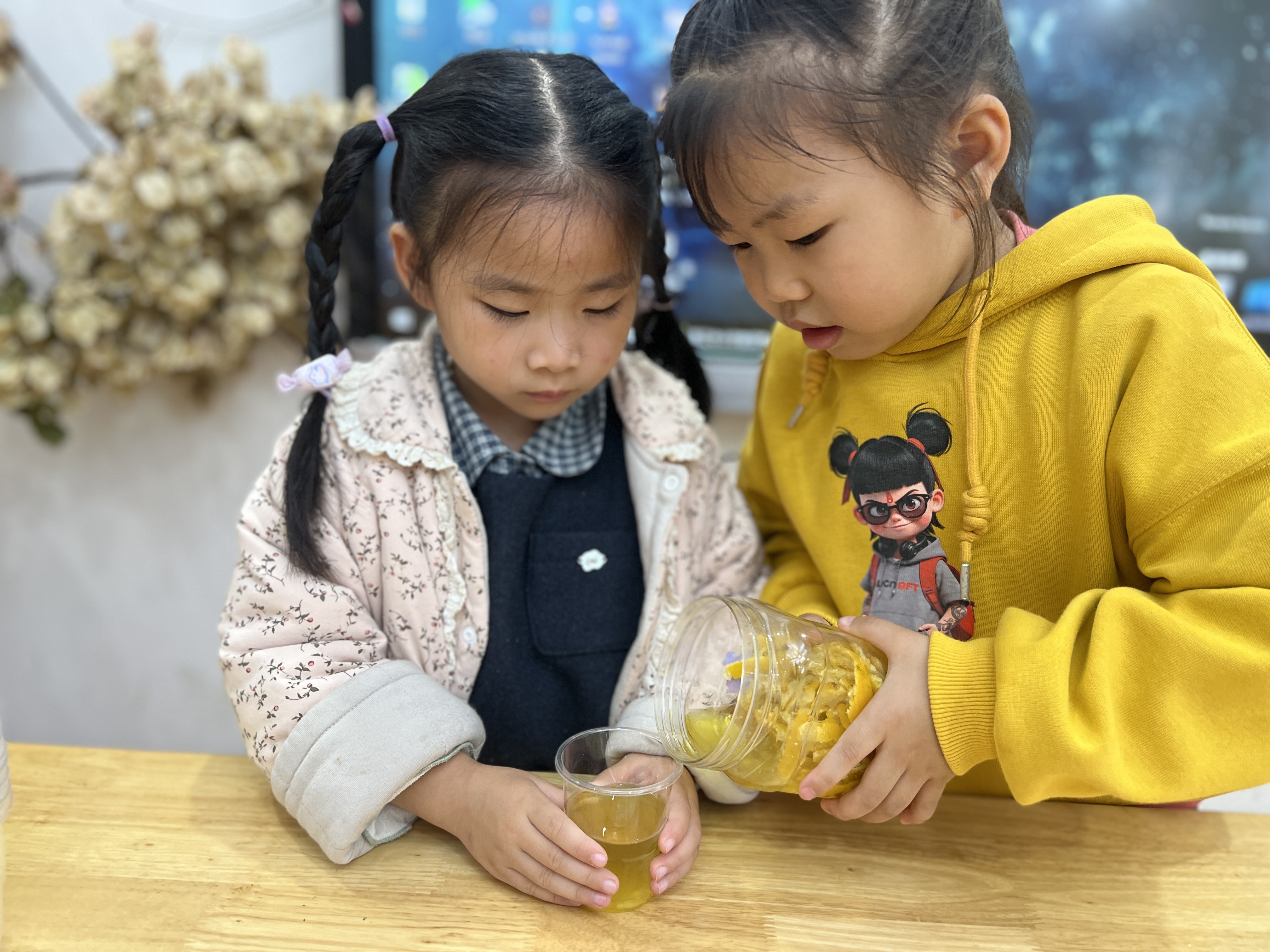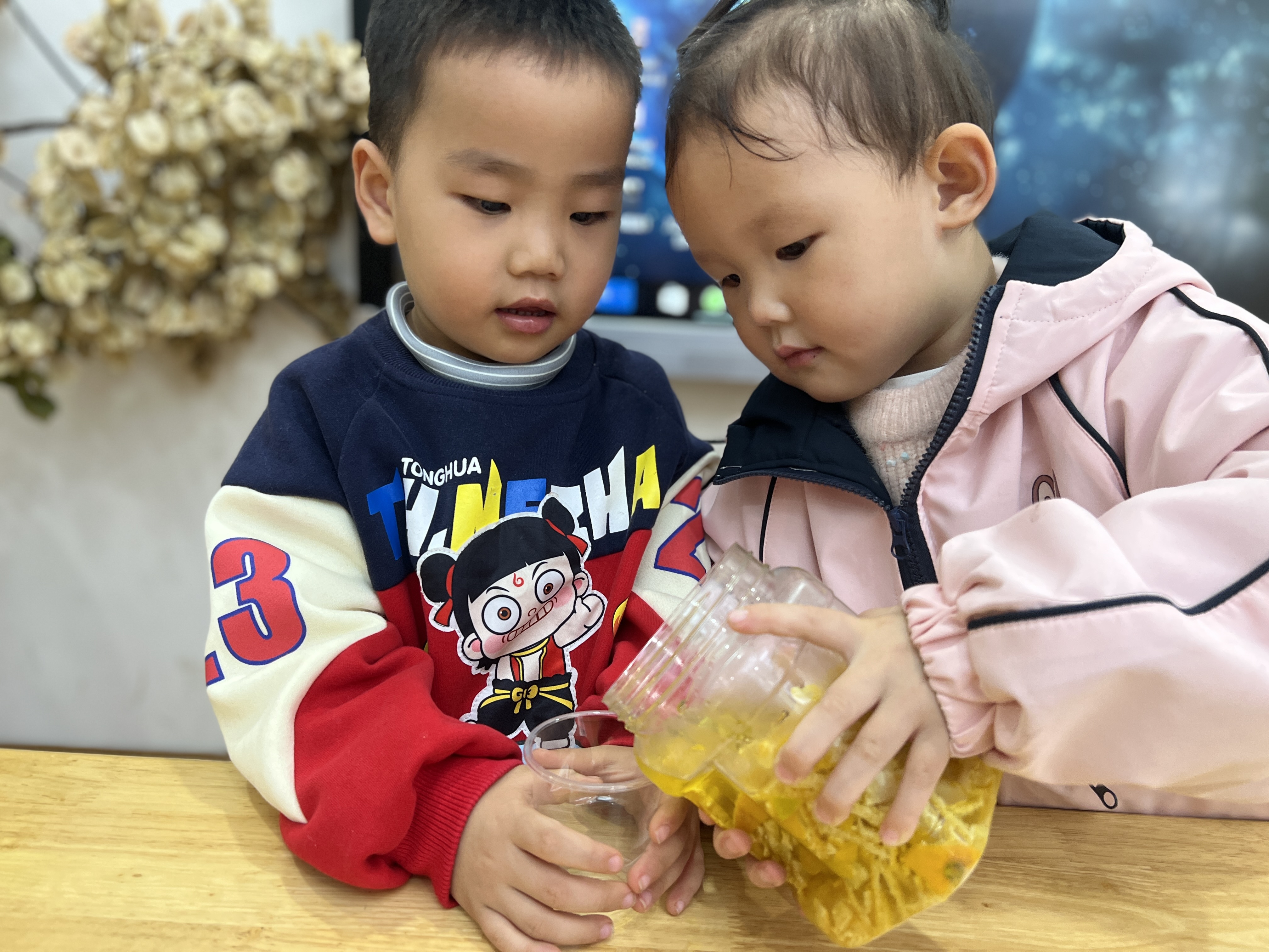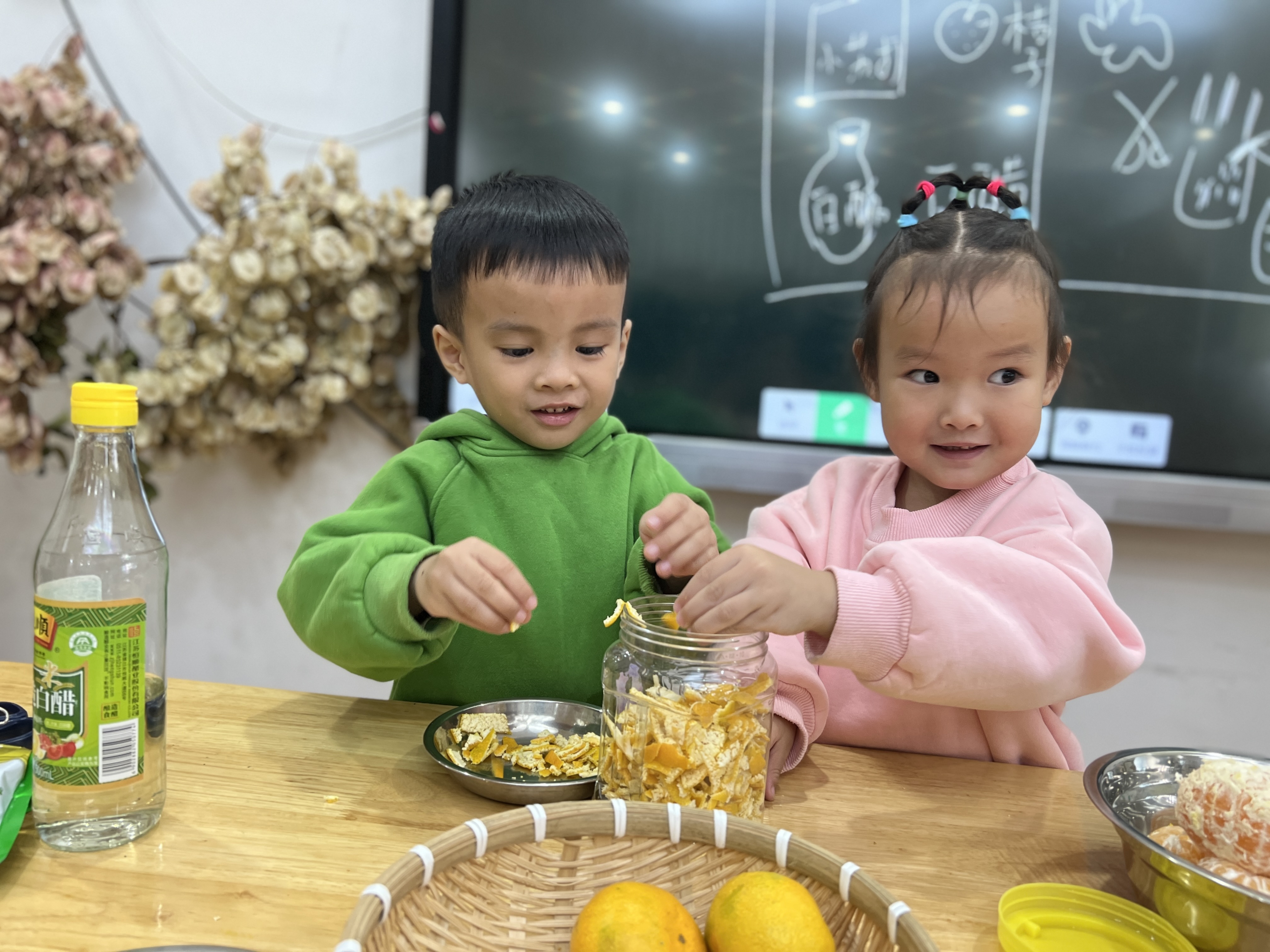 橘子皮大变身,幼儿园里的科学小魔法 近日,兰亭街道阮江幼儿园小班的小朋友们在老师的带领下,开启了一场别开生面的科学探索活动——用橘子皮制作“洗洁精”。 活动现场,孩子们围坐在一起,老师先给大家讲解了橘子皮的特性以及制作“洗洁精”的原理,随后便将准备好的橘子、白醋等材料分发给孩子们。小朋友们迫不及待地动手,小心翼翼地剥下橘子皮,把它们一点点放入玻璃瓶中,接着倒入白醋,拧紧瓶盖,期待着神奇的变化。 通过此次活动,培养孩子们对科学的兴趣,锻炼他们的动手能力,让孩子们在实践中感受科学的魅力,了解生活中常见材料的奇妙用途。此次用橘子皮制作“洗洁精”的活动,不仅为孩子们的幼儿园生活增添了乐趣,更在他们小小的心中种下了科学探索的种子,相信在未来,这些种子将生根发芽,引领他们探索更多未知的精彩。