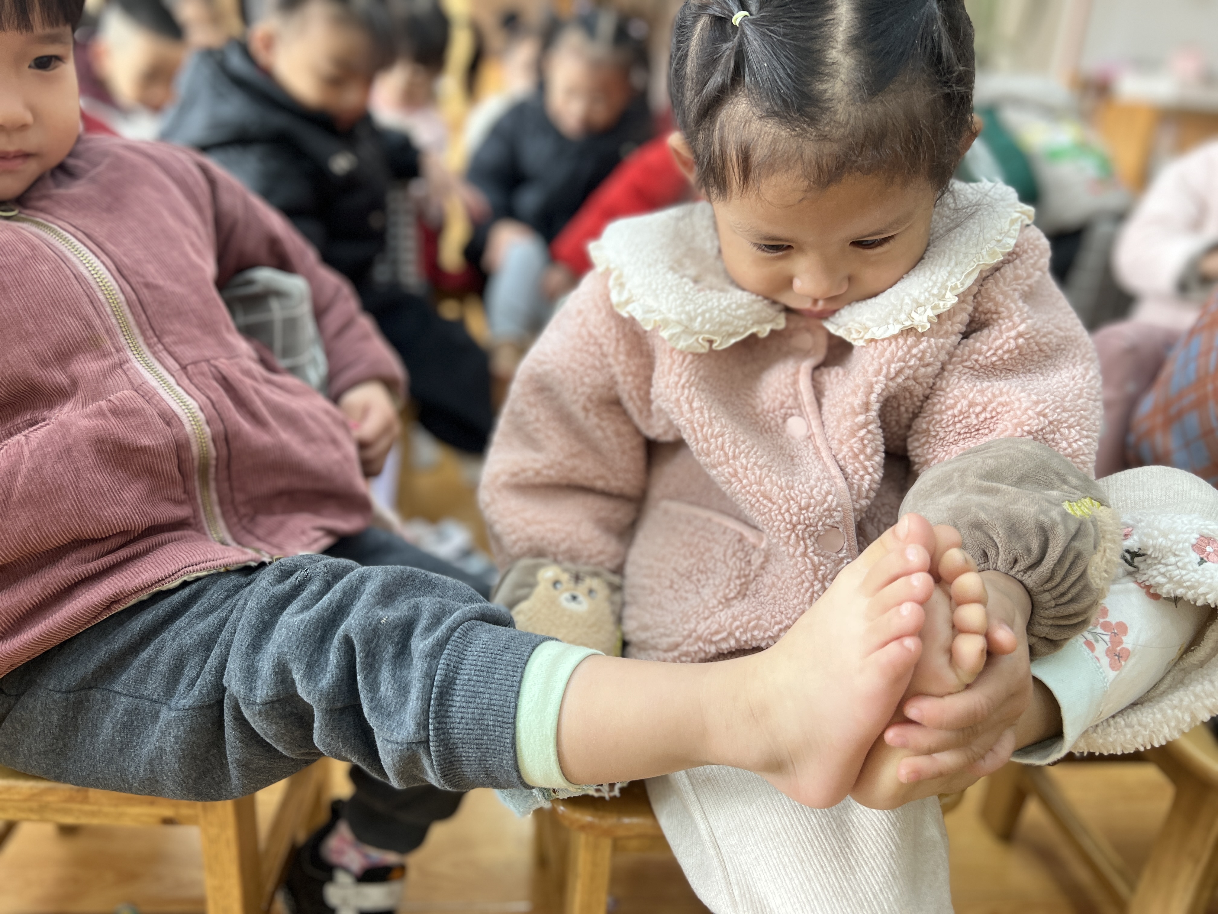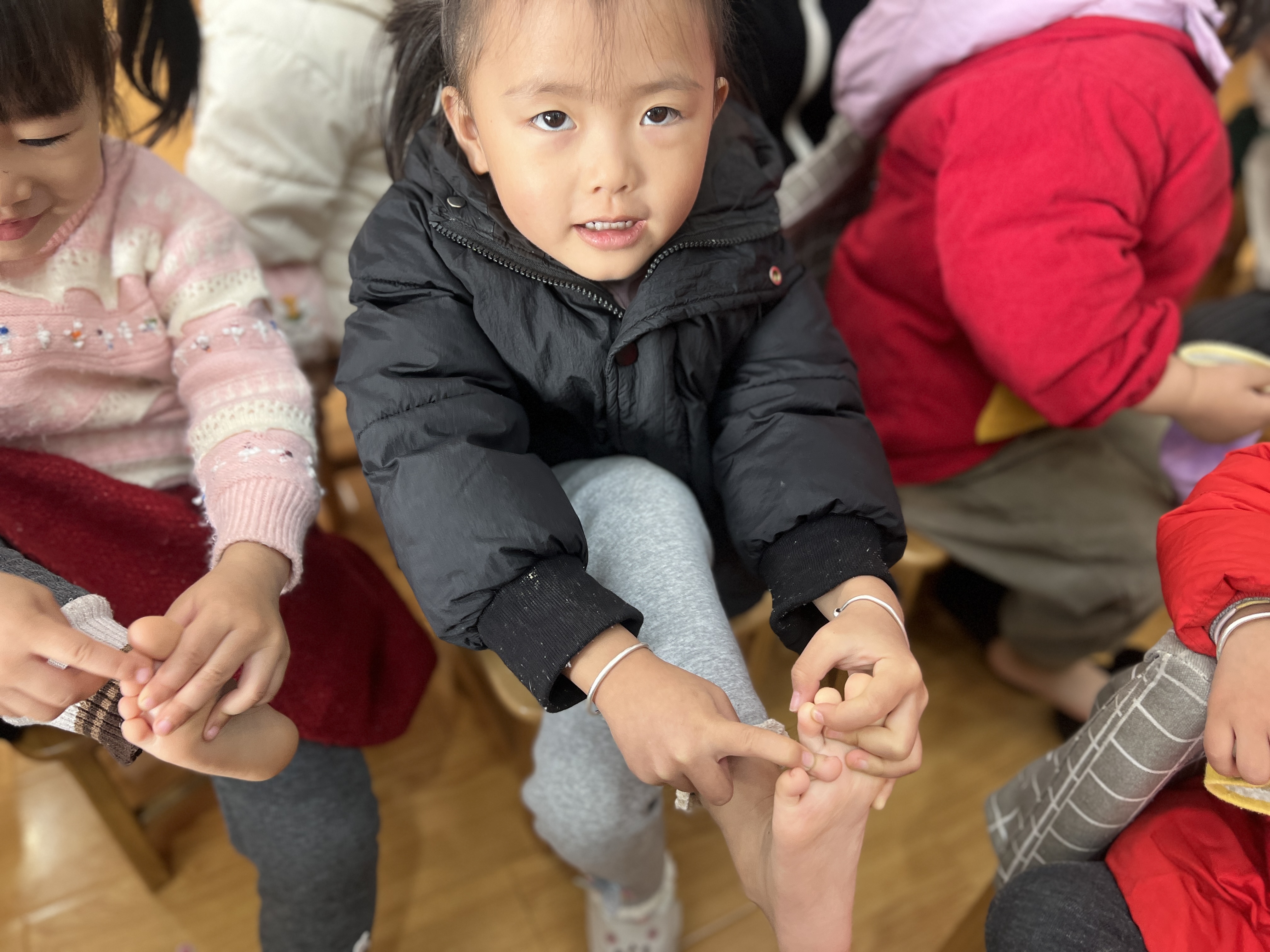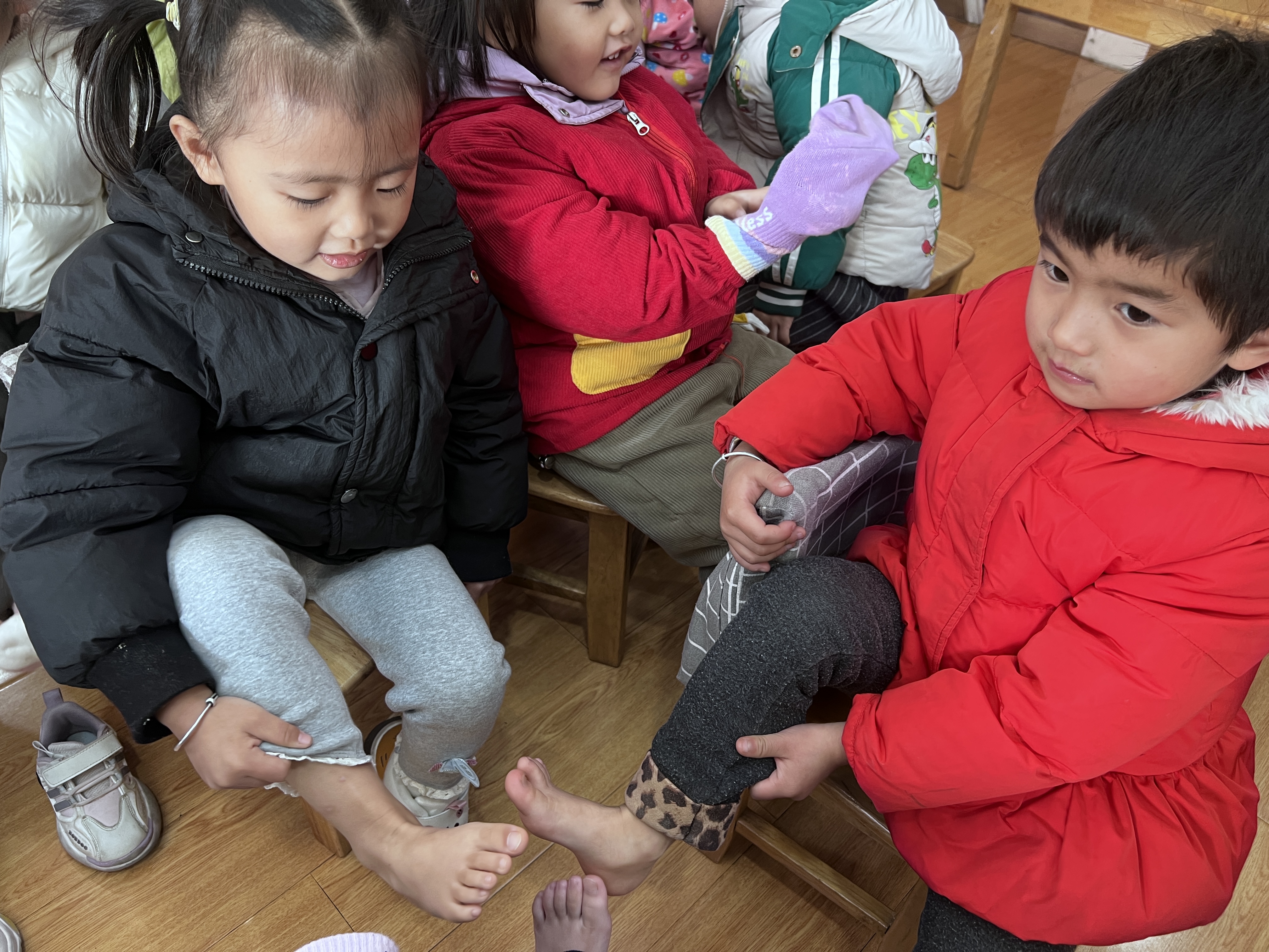 小班萌娃欢乐比小脚,探索身体小奥秘 近日,绍兴市柯桥区兰亭街道阮江幼儿园小班开展了一场趣味十足的“小脚比一比”活动,小朋友们积极参与,现场充满欢声笑语。 活动中,老师先引导孩子们观察自己的小脚,随后组织大家两两一组,互相比较小脚的大小。小朋友们兴致勃勃地脱下鞋子,把小脚凑在一起,认真地观察、讨论。有的小朋友惊讶地说:“你的脚比我的大好多呀!”还有的小朋友好奇地问老师:“为什么我们的脚不一样大呢?” 此次活动不仅让小班小朋友对自己的身体有了更直观的认识,激发了他们对周围事物的探索兴趣,也为幼儿园的生活增添了一抹别样的色彩。