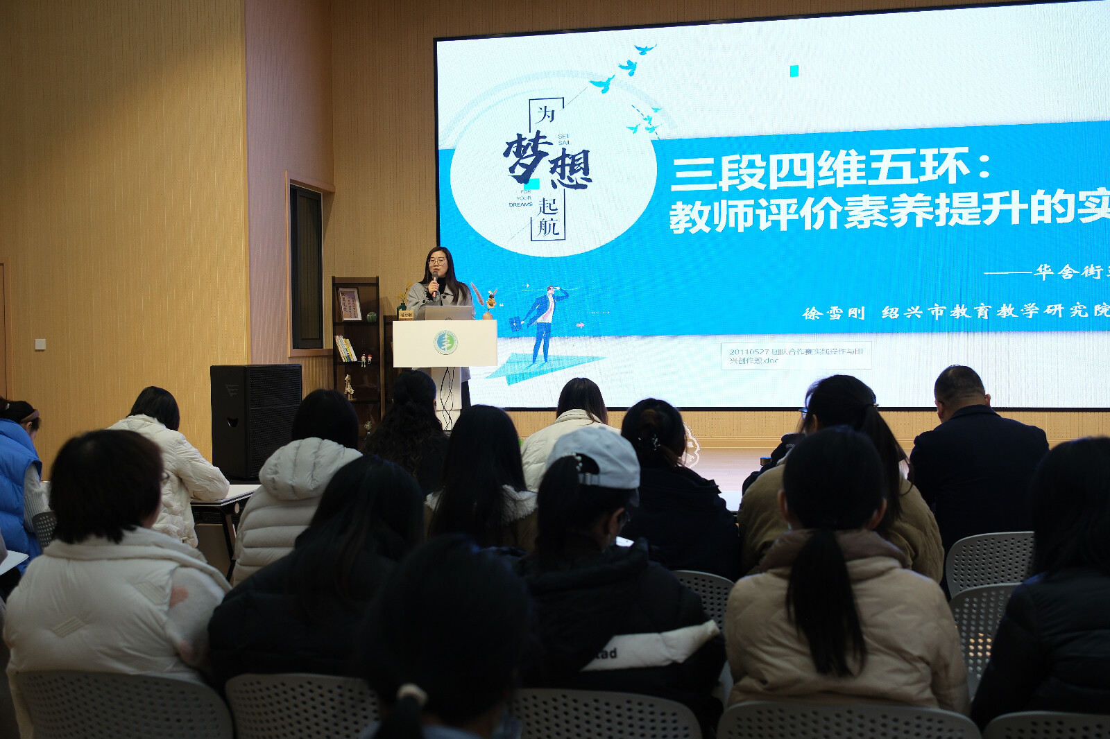 通讯员:柯桥区柯桥街道华舍中心幼儿园锦绣园区 翁丹丹 近日,柯桥区华舍中心幼儿园教育集团锦绣园区开展了“三段四维五环:教师评价素养提升的实践路径”专题培训。绍兴市教育教学研究院徐雪刚研究员围绕教师评价素养提升,从评价观念落后、教学评一体化缺失等四大核心问题切入,结合美术、区域、数学等案例进行 剖析。 培训提出“园级引领性研修、年级聚焦性共研、班级日常性自研”三段推进策略,构建“三级联研”网络,并从评价观念、设计能力、反馈能力、结果运用四个维度,引导教师实现从“评判人员”到“促进伙伴”等四大转变。整场培训紧扣《幼儿园保育教育质量评估指南》精神,推动教师评价观念向“促进发展”转型,为幼儿园“教学评”一体化落地奠定基础。