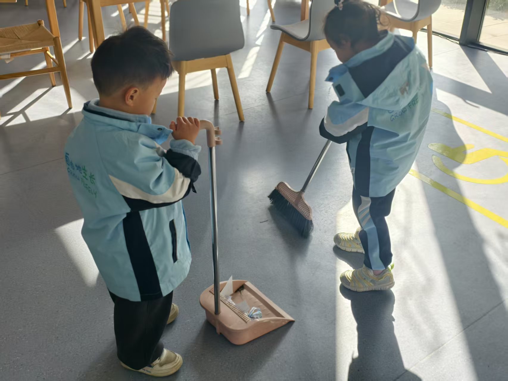 通讯员: 柯桥区华舍中心幼儿园锦绣园区 翁丹丹 为培养幼儿爱护环境、服务社区的意识,今日,华舍中心幼儿园教育集团锦绣园区组织小二班幼儿走进纺都社区,开展了一场别开生面的“雅手护社区”劳动实践活动。 活动以“垃圾宝宝找家”的趣味情景导入,教师通过玩偶互动和儿歌示范,生动讲解了扫帚、簸箕等工具的安全使用方法。随后,孩子们在教师与社区志愿者的带领下分组实践:有的手持小扫帚认真清扫落叶纸屑,有的用湿巾仔细擦拭社区休息区的桌面,在亲身劳动中体验了清洁工作的意义。任务完成后,每位幼儿都骄傲地展示了他们的“战果”,并获得了“清洁小卫士”的荣誉贴纸和胸牌。活动最后,孩子们围坐一圈,用稚嫩的语言和动作分享劳动喜悦,并在社区留下了充满成就感的合影。 本次活动将教育空间延伸至社区,通过具身体验引导幼儿树立劳动观念,增强了其社会责任感与动手能力,是家园社协同育人的一次生动实践。